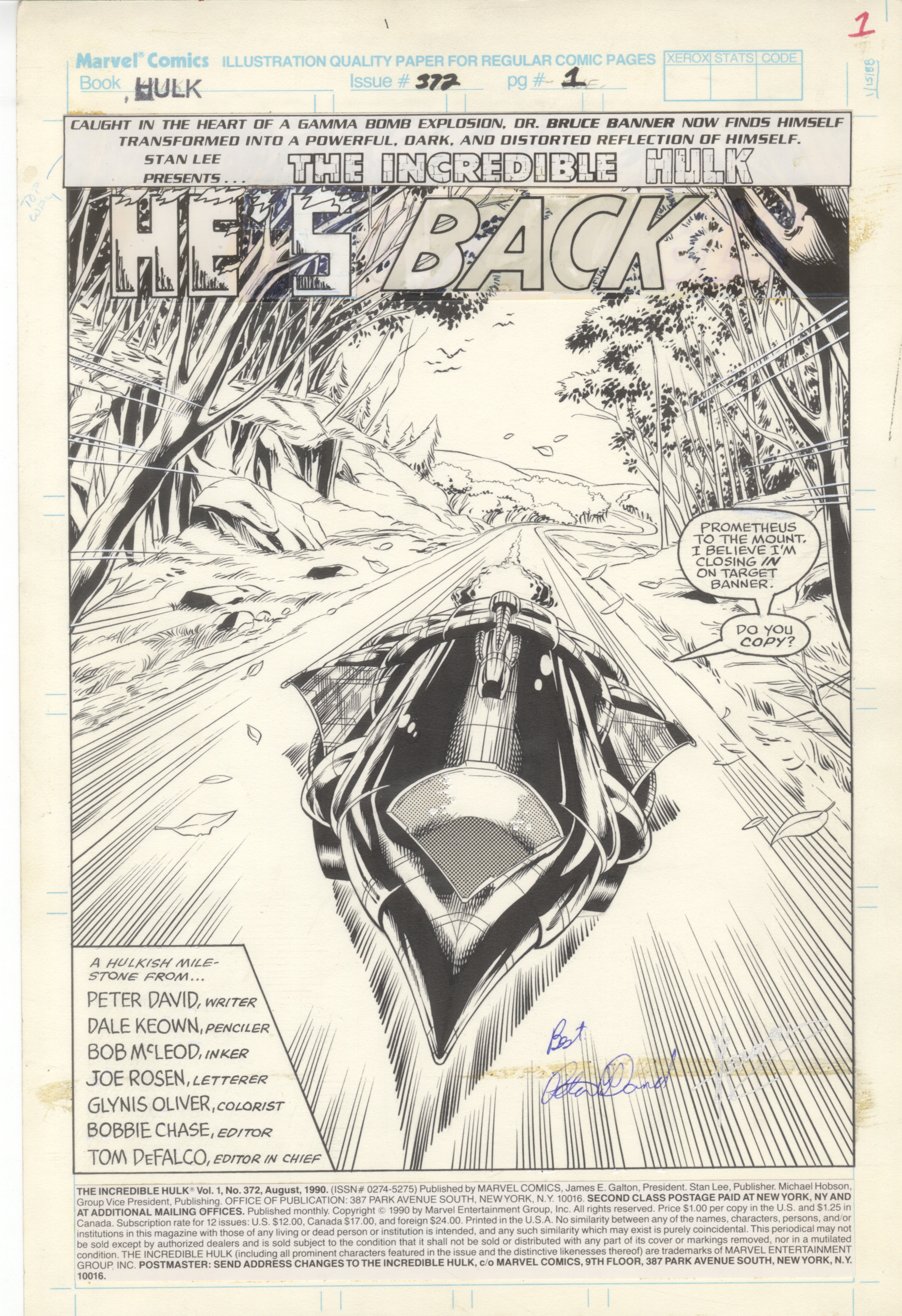 Incredible Hulk #372 pg 1 Original Comic Art Dale Keown Splash