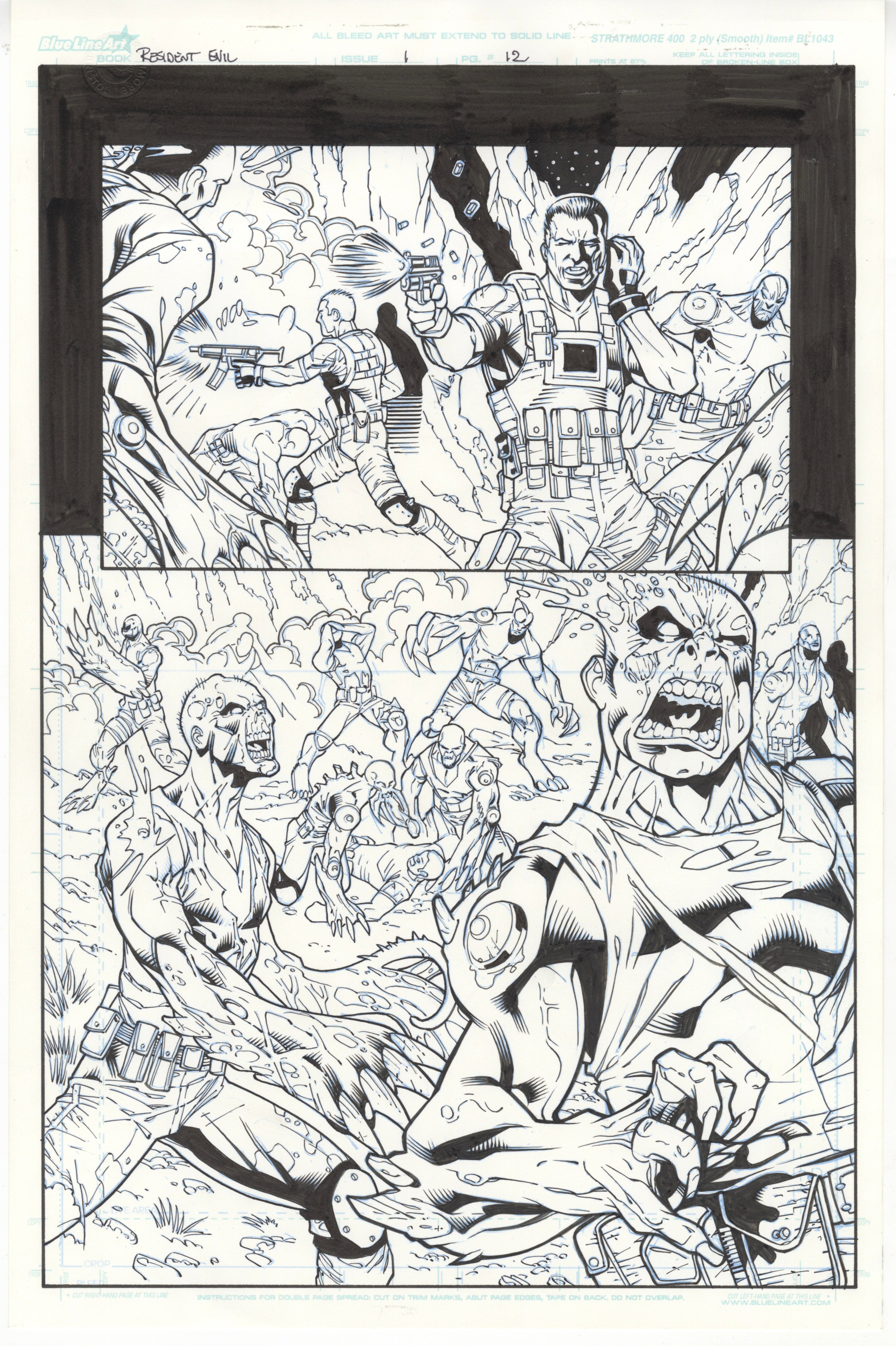 Resident Evil #1 page 12 Dessin original de bande dessinée par Kevin Sharpe - Demi-page