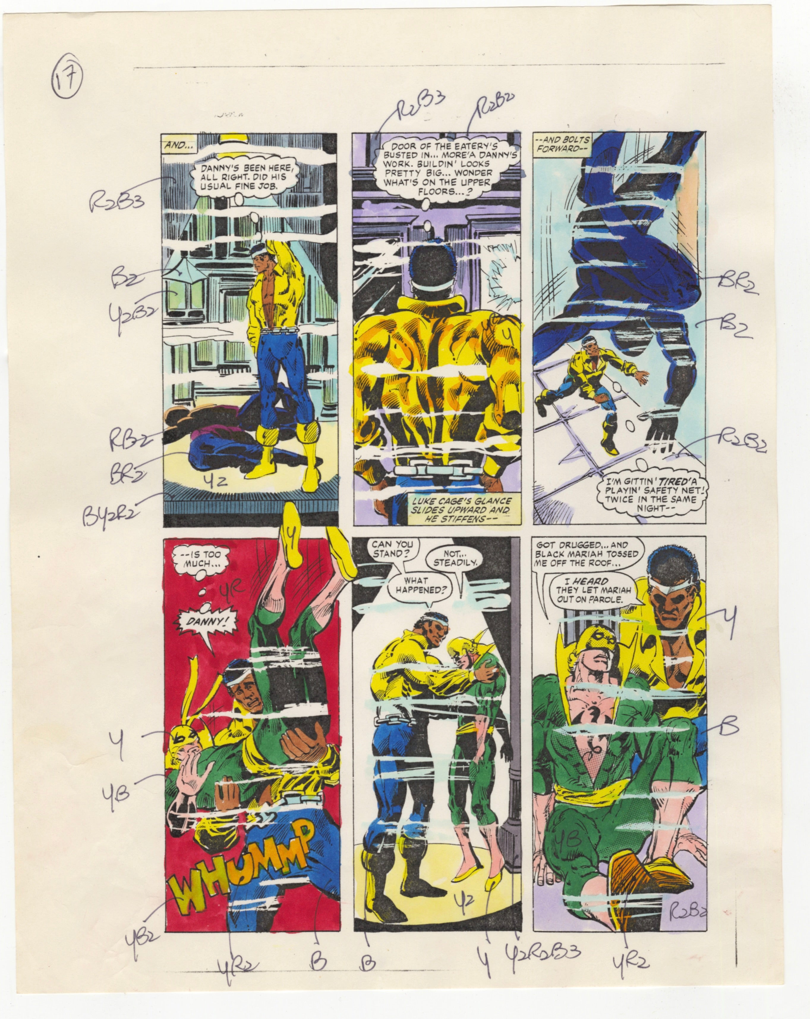 Power Man et Iron Fist #88, page 17, guide de couleurs, illustration originale de bande dessinée.