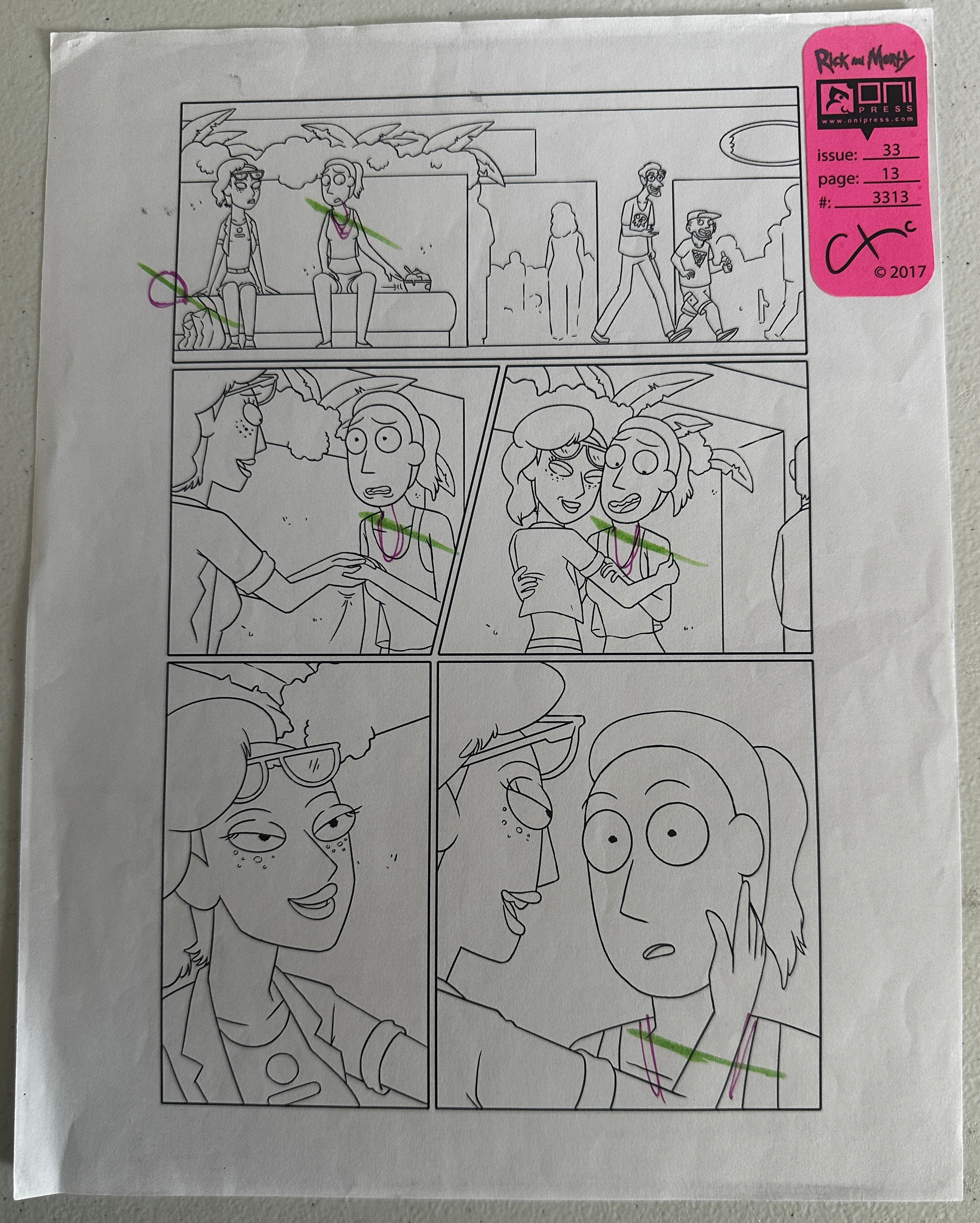 Rick et Morty #33 page 13 - Page originale de pré-production de bande dessinée avec certificat d'authenticité.