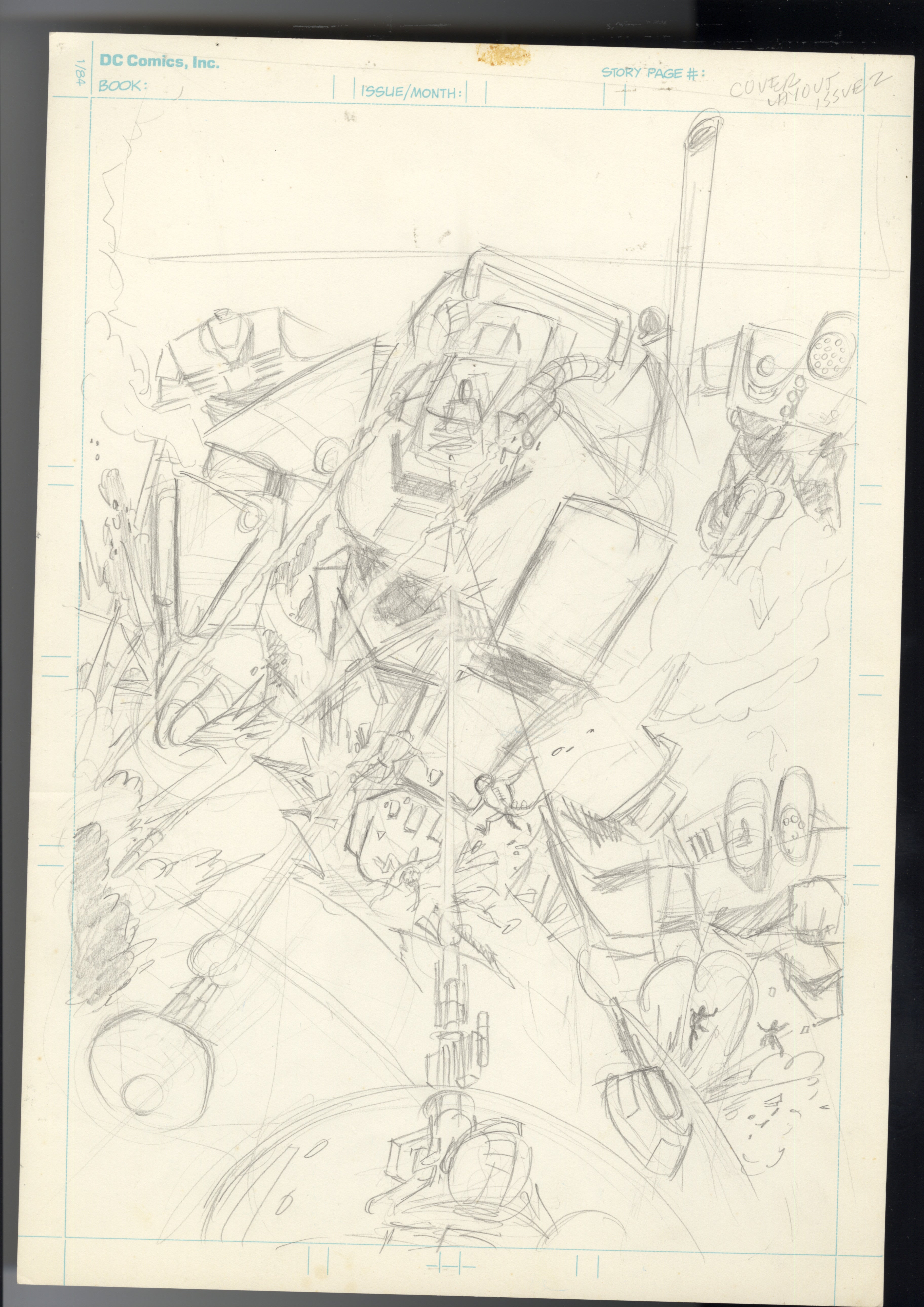 Dessin préliminaire de la couverture de la bande dessinée originale Robotech Defenders par Judith Hunt
