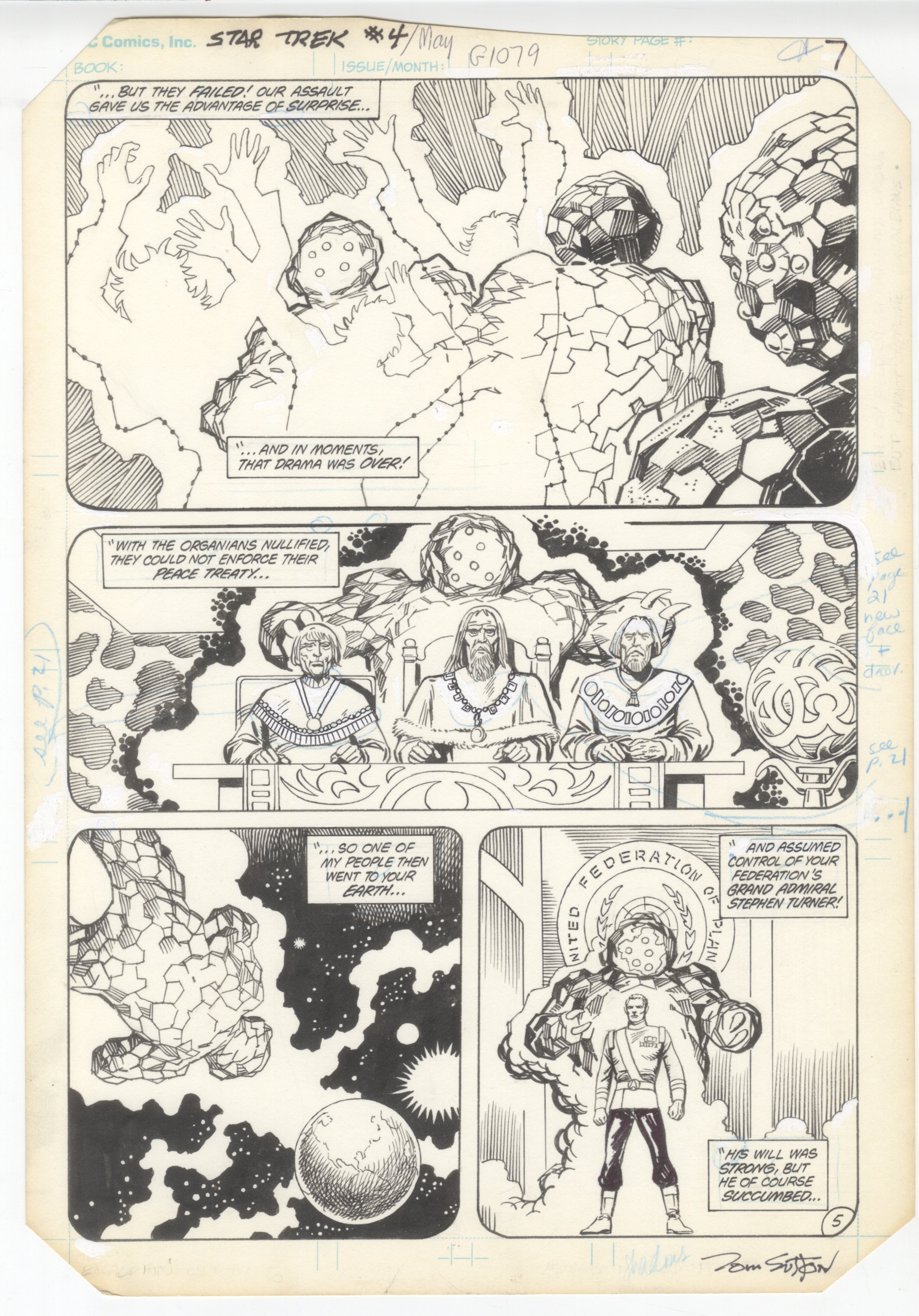 Star Trek #4 page 5 Dessin original de bande dessinée par Tom Sutton 1984