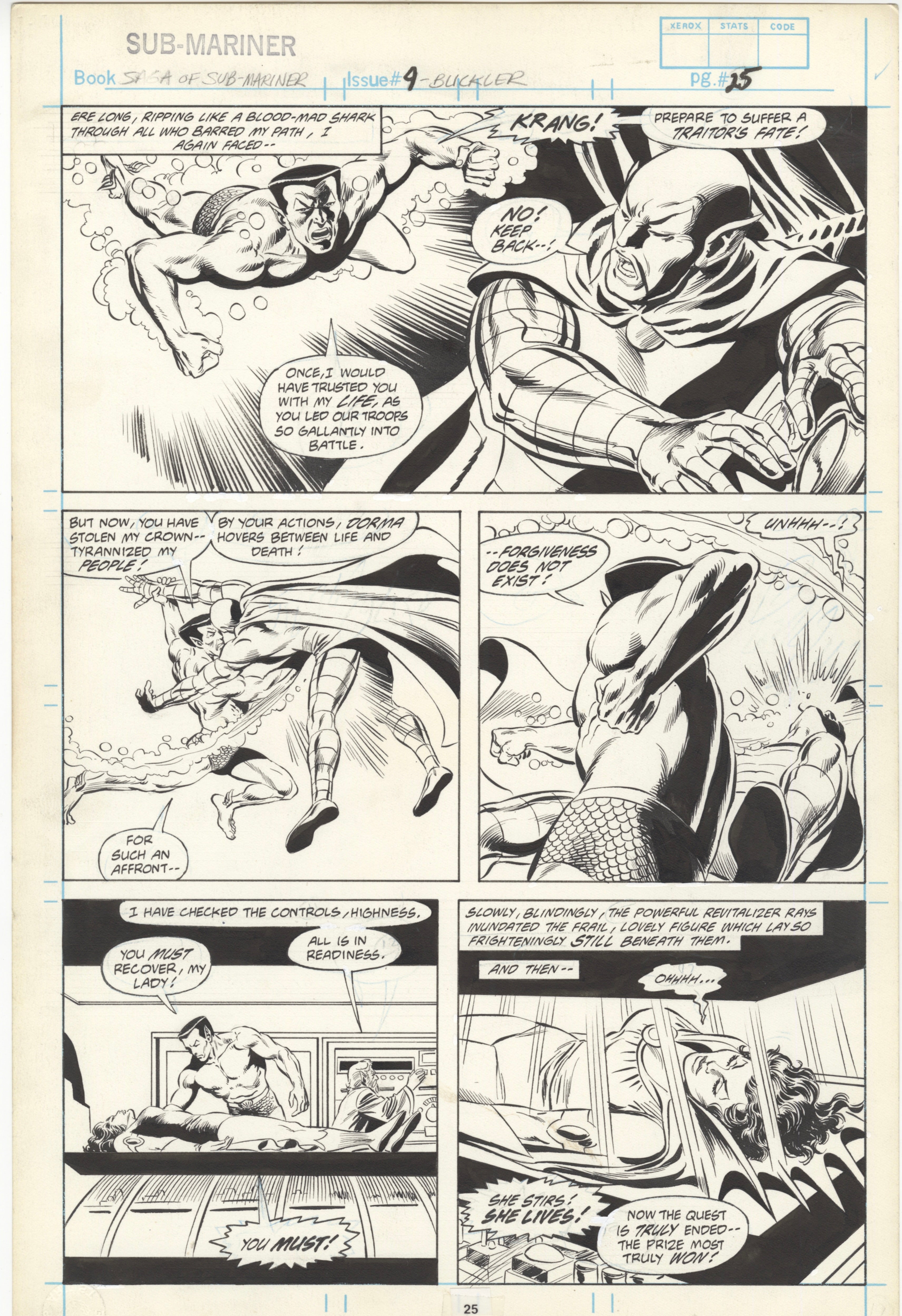 Saga of the Sub-Mariner #9 page 25 - Dessin original de bande dessinée par Rich Buckler - Sub-Mariner contre le seigneur de guerre Krang