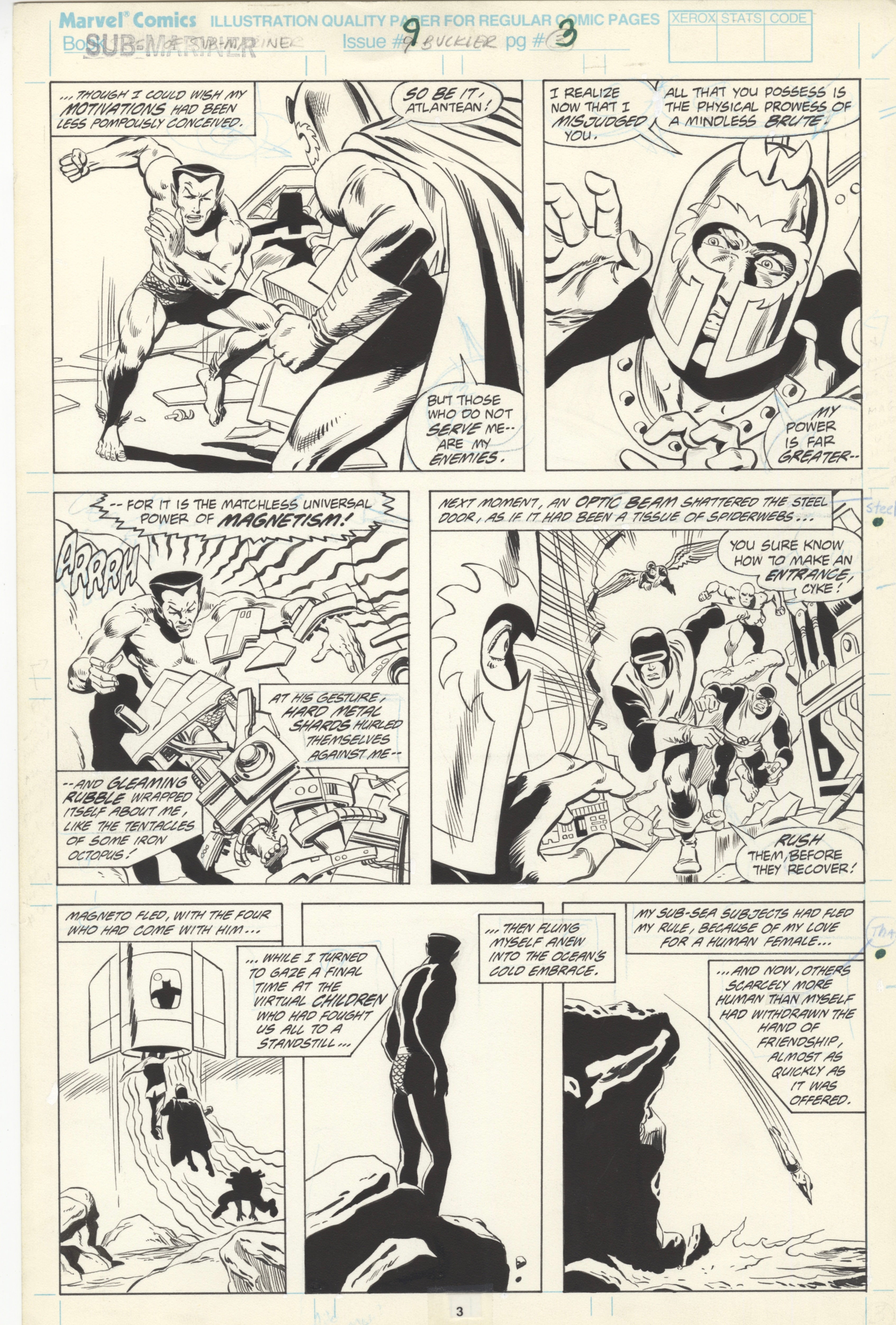 Saga of the Sub-Mariner #9 page 3 Dessin original de bande dessinée par Rich Buckler mettant en scène les X-Men et Magneto