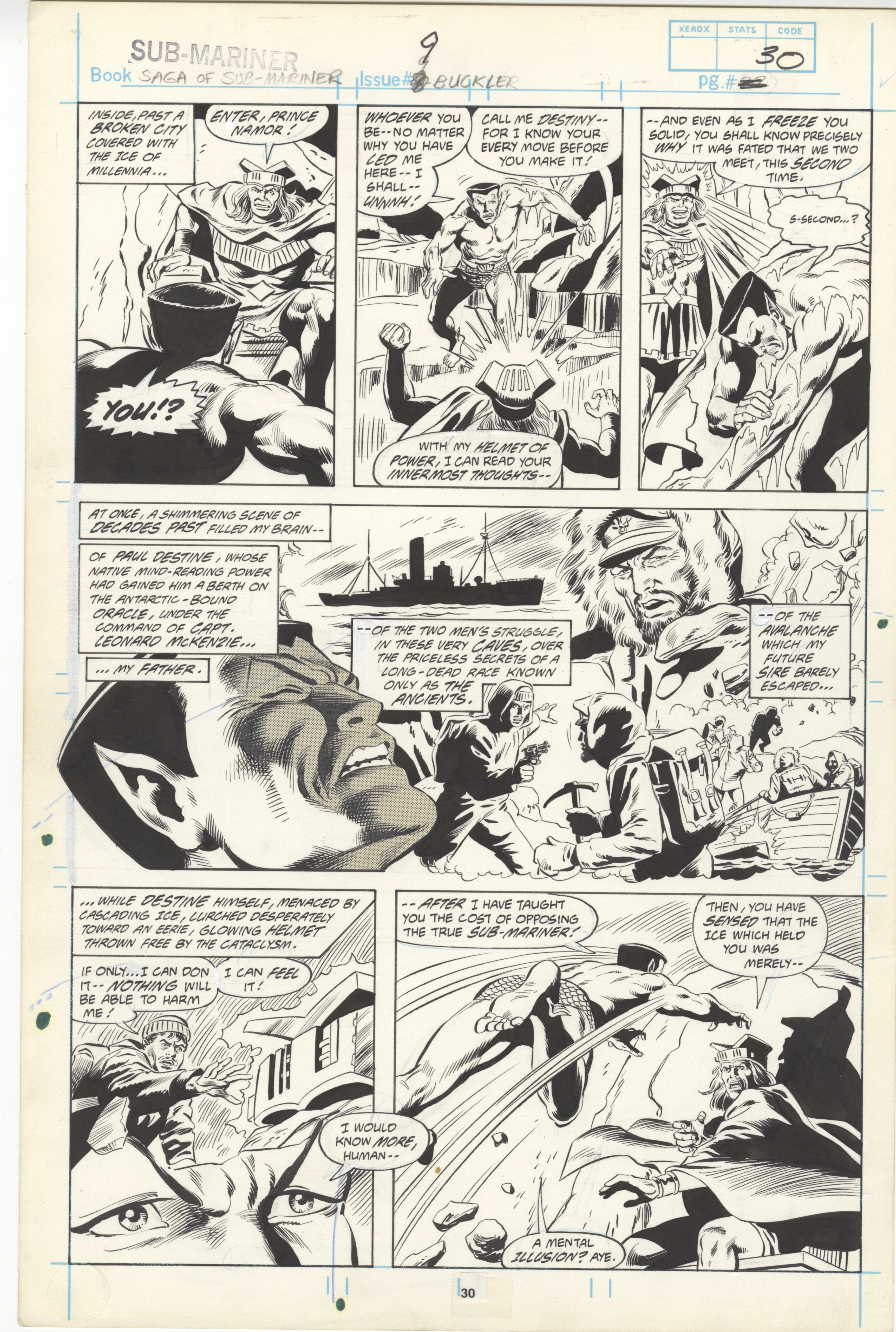 Saga of the Sub-Mariner #9 page 30 Sub-Mariner contre Destiny. Dessin original de bande dessinée par Rich Buckler.