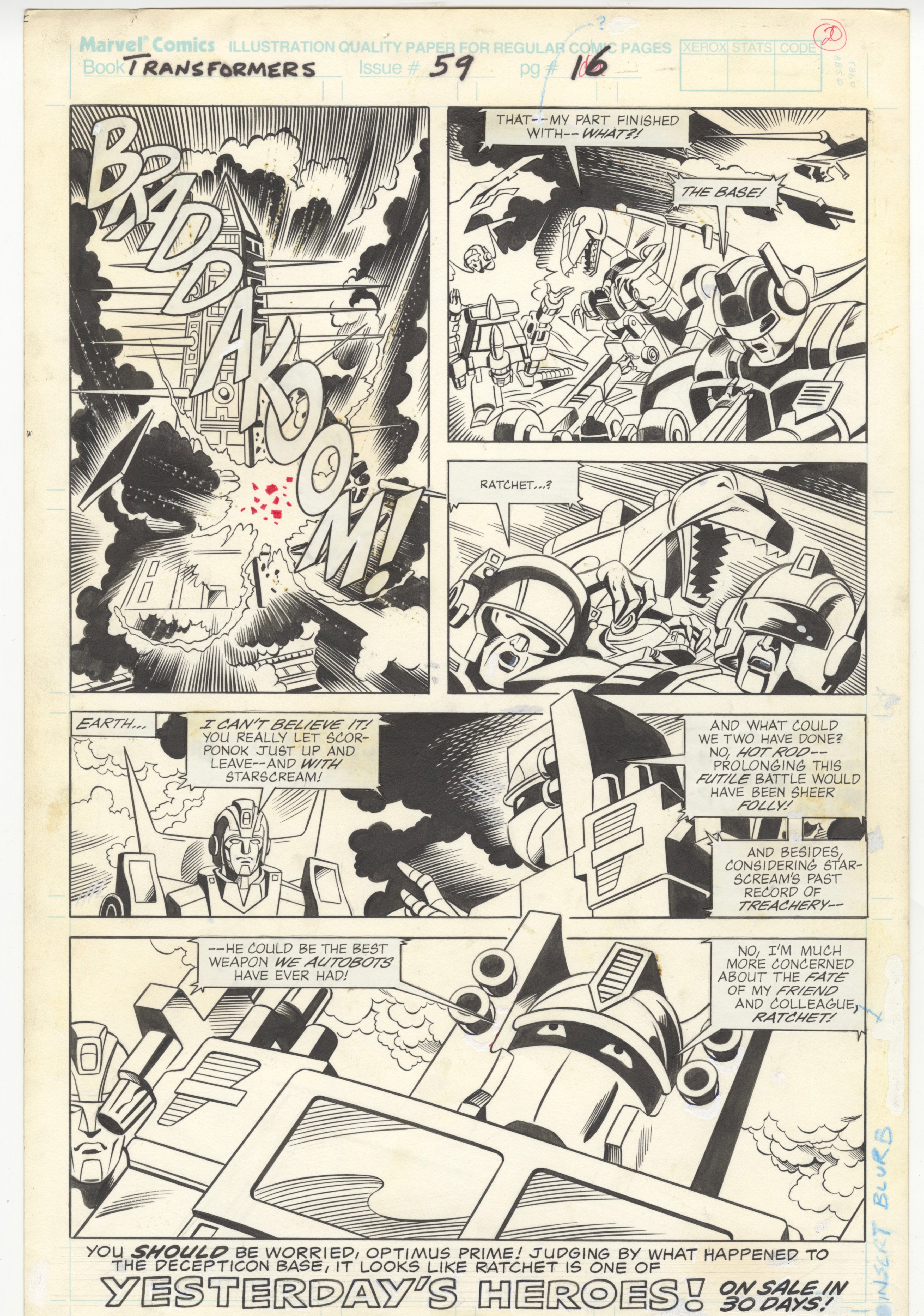 Transformers #59 Page 20 Dessin original de bande dessinée de Jose Delbo, Grimlock, Optimus