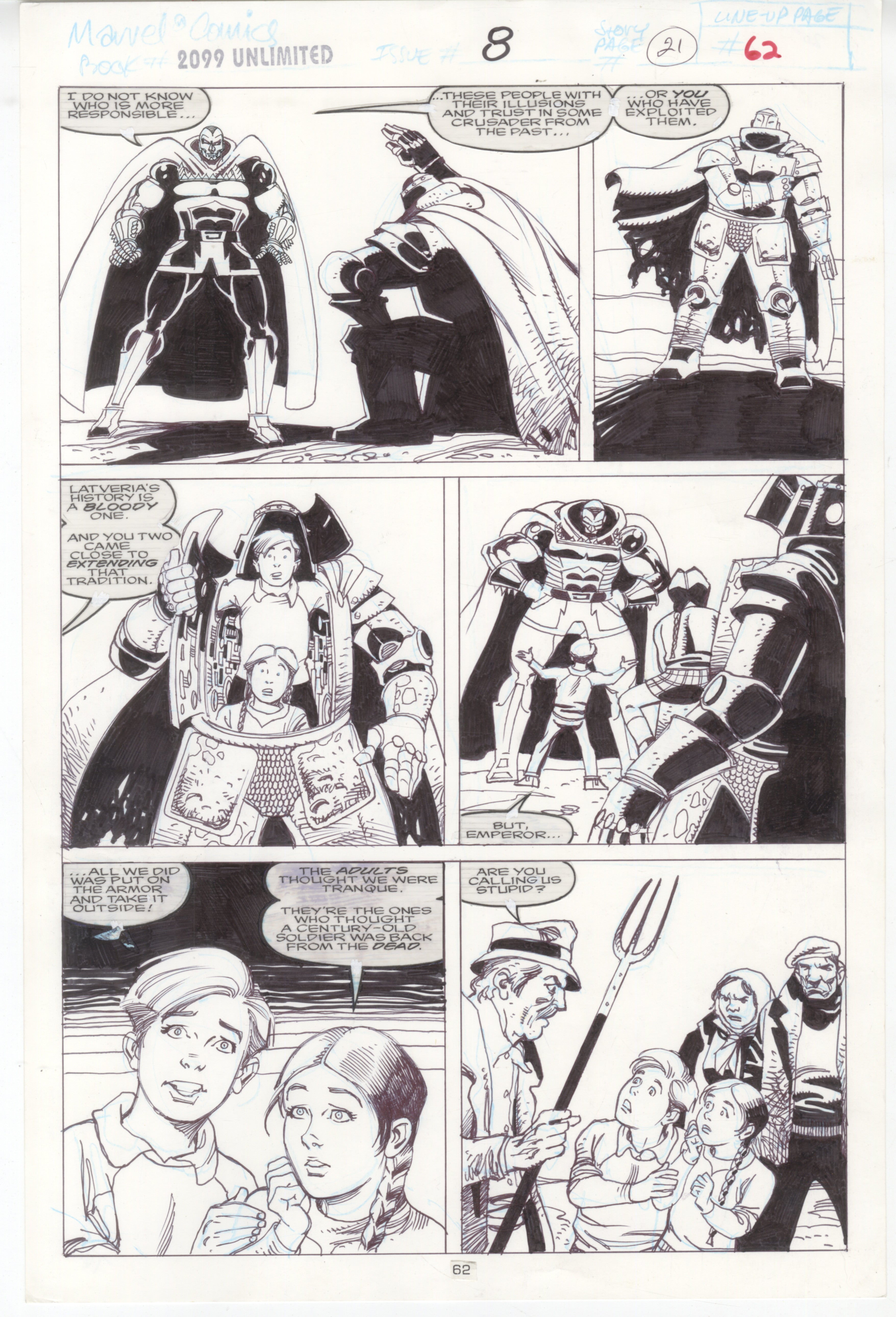 2099 Unlimited #8 page 62 Dessin original de bande dessinée d'Ernie Colon, Docteur DOOM