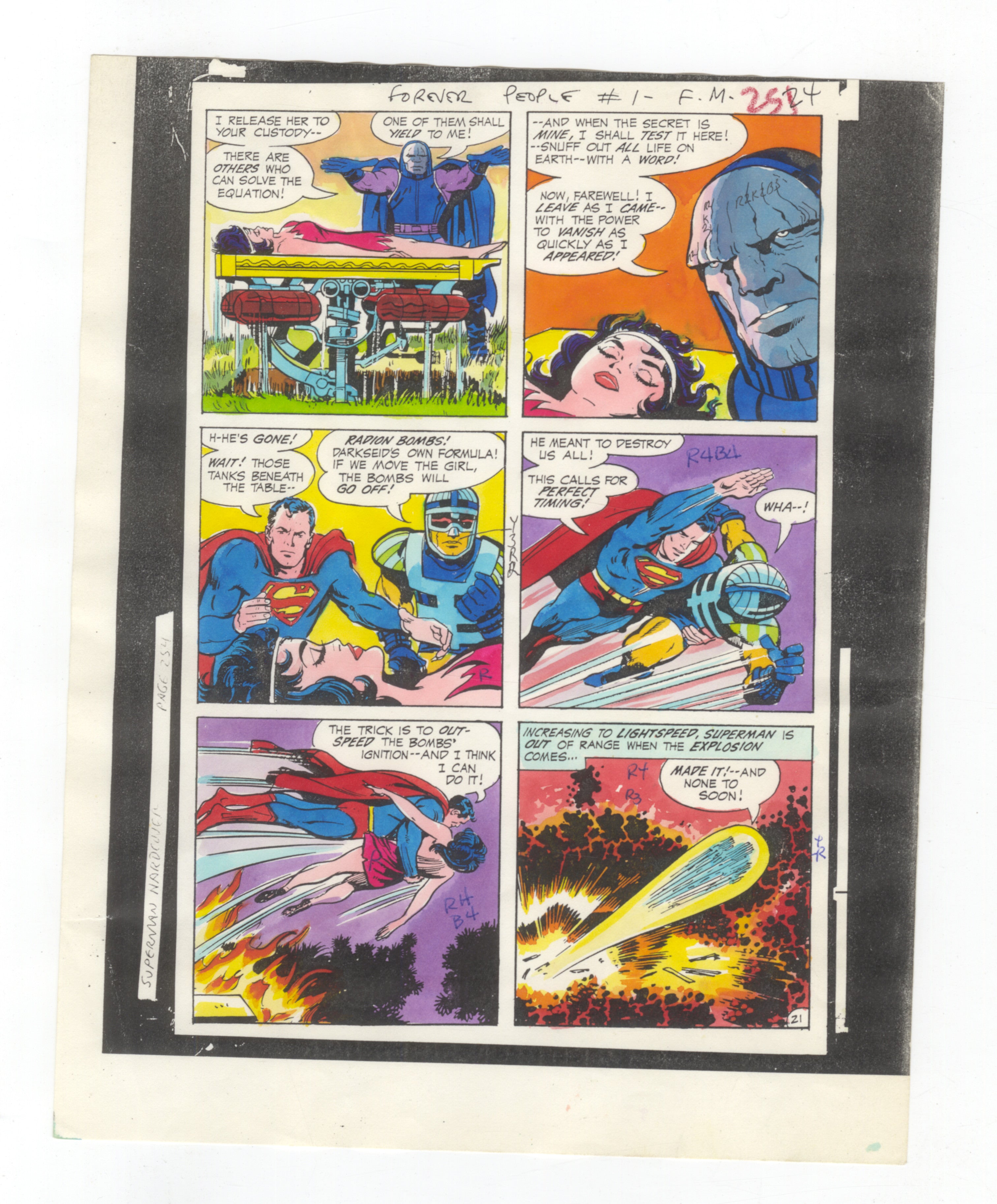 Forever People #1 page 20 GUIDE DE COULEURS Dessin original pour la production de bande dessinée Darkseid