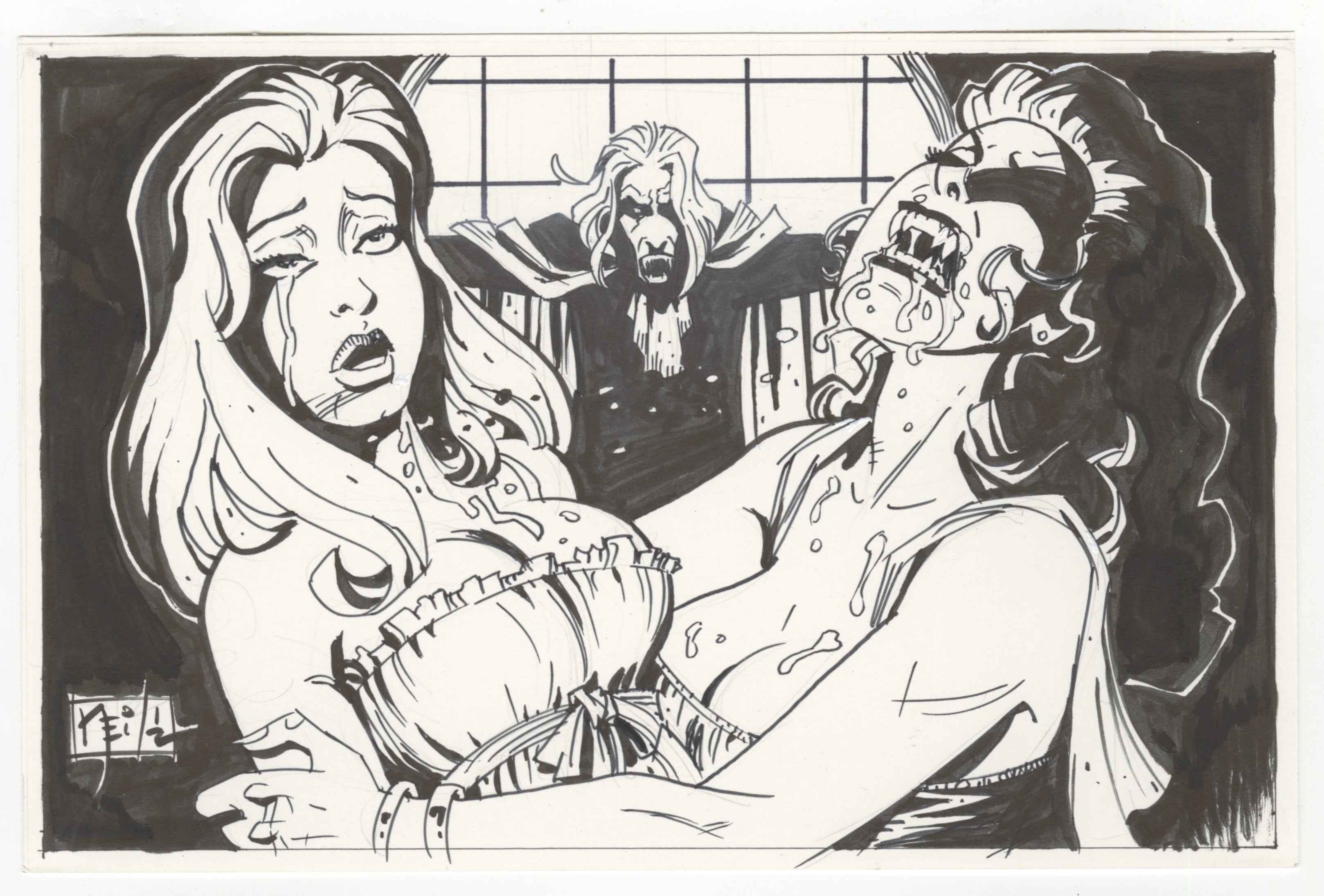Dessin original de bande dessinée pour Flesh and Blood par Neil Vokes