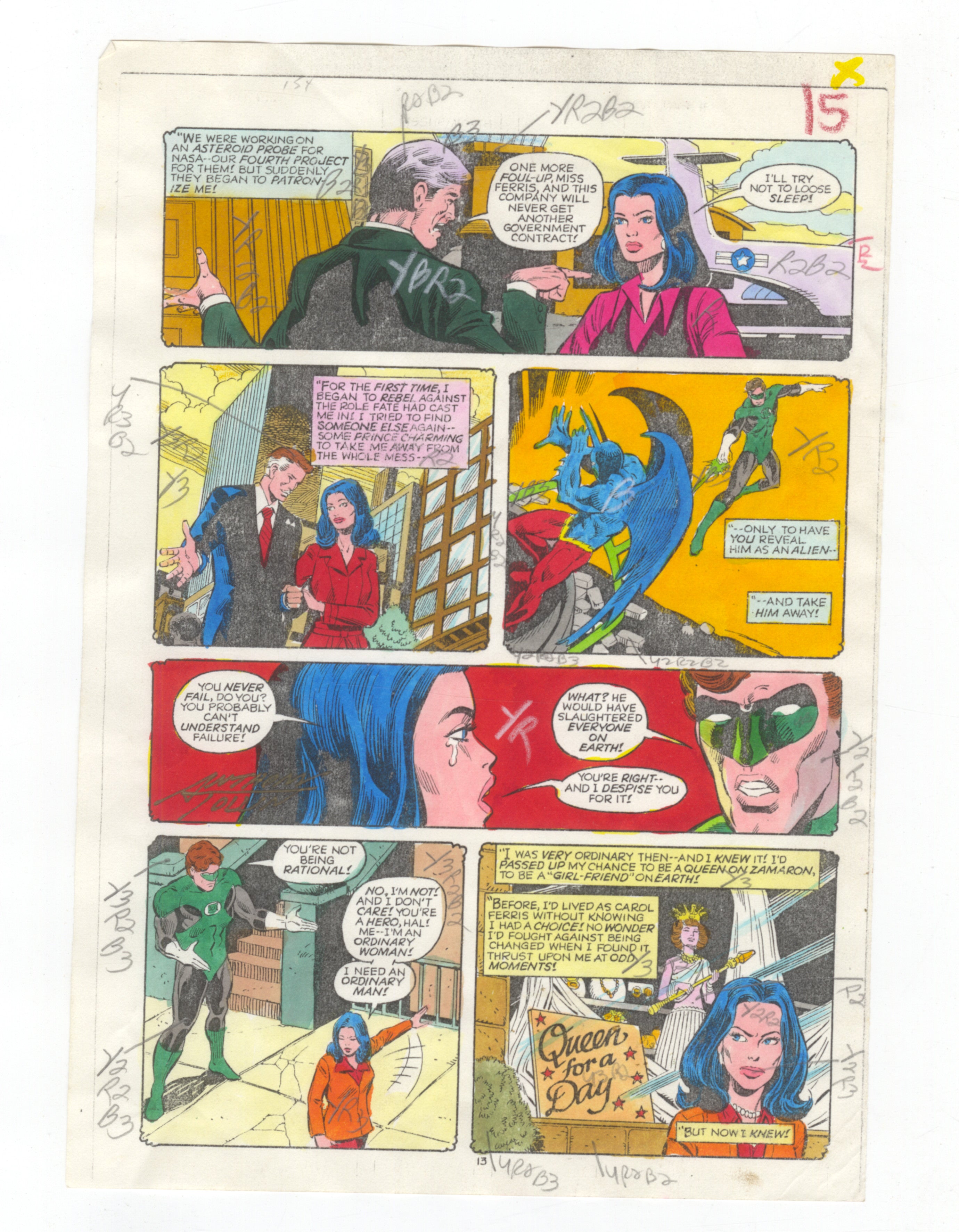 Green Lantern #192 page 13 GUIDE DE COULEURS Dessin original de production de bande dessinée