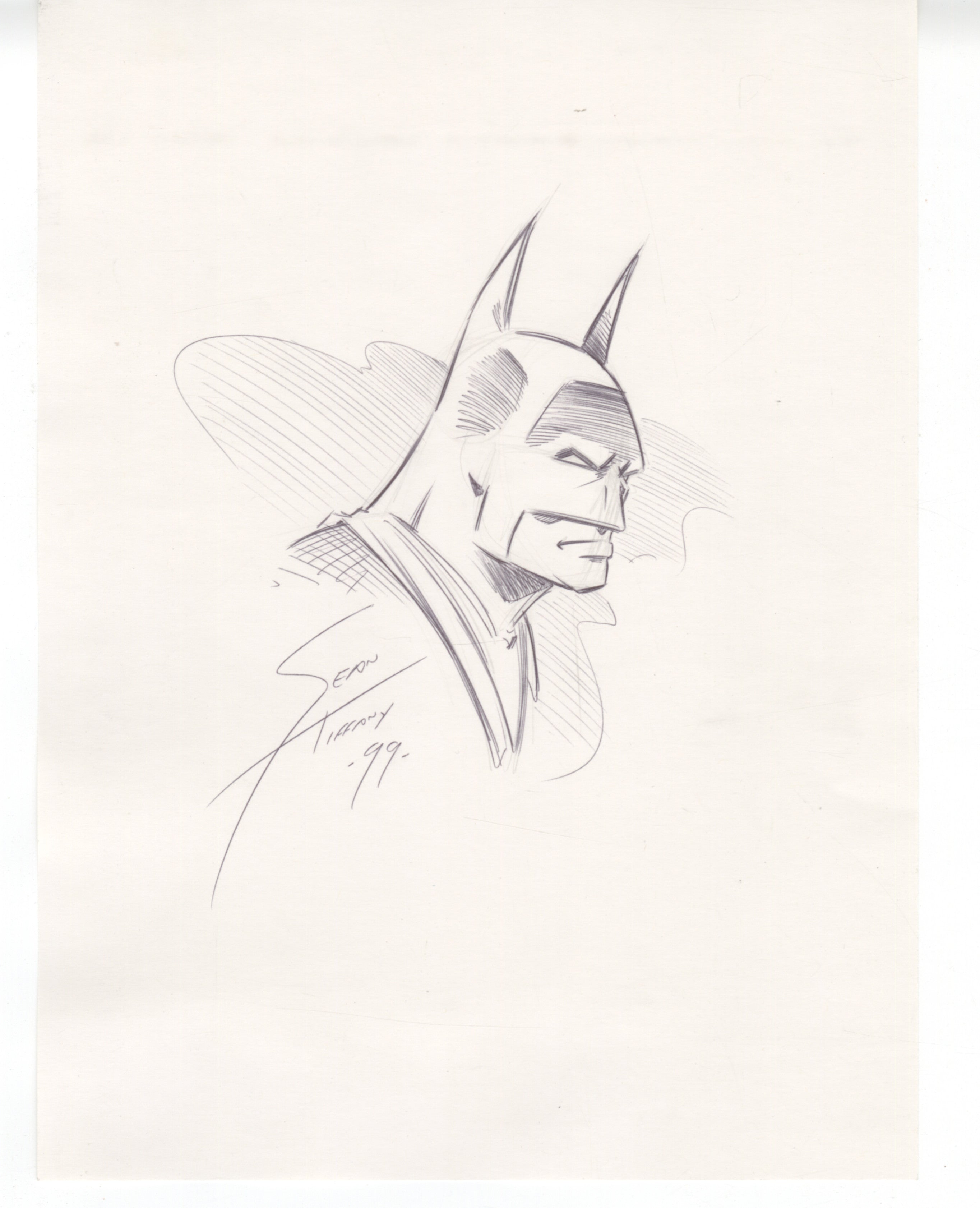 Disegno originale a matita di Batman, tratto da un fumetto, di Sean Tiffany.
