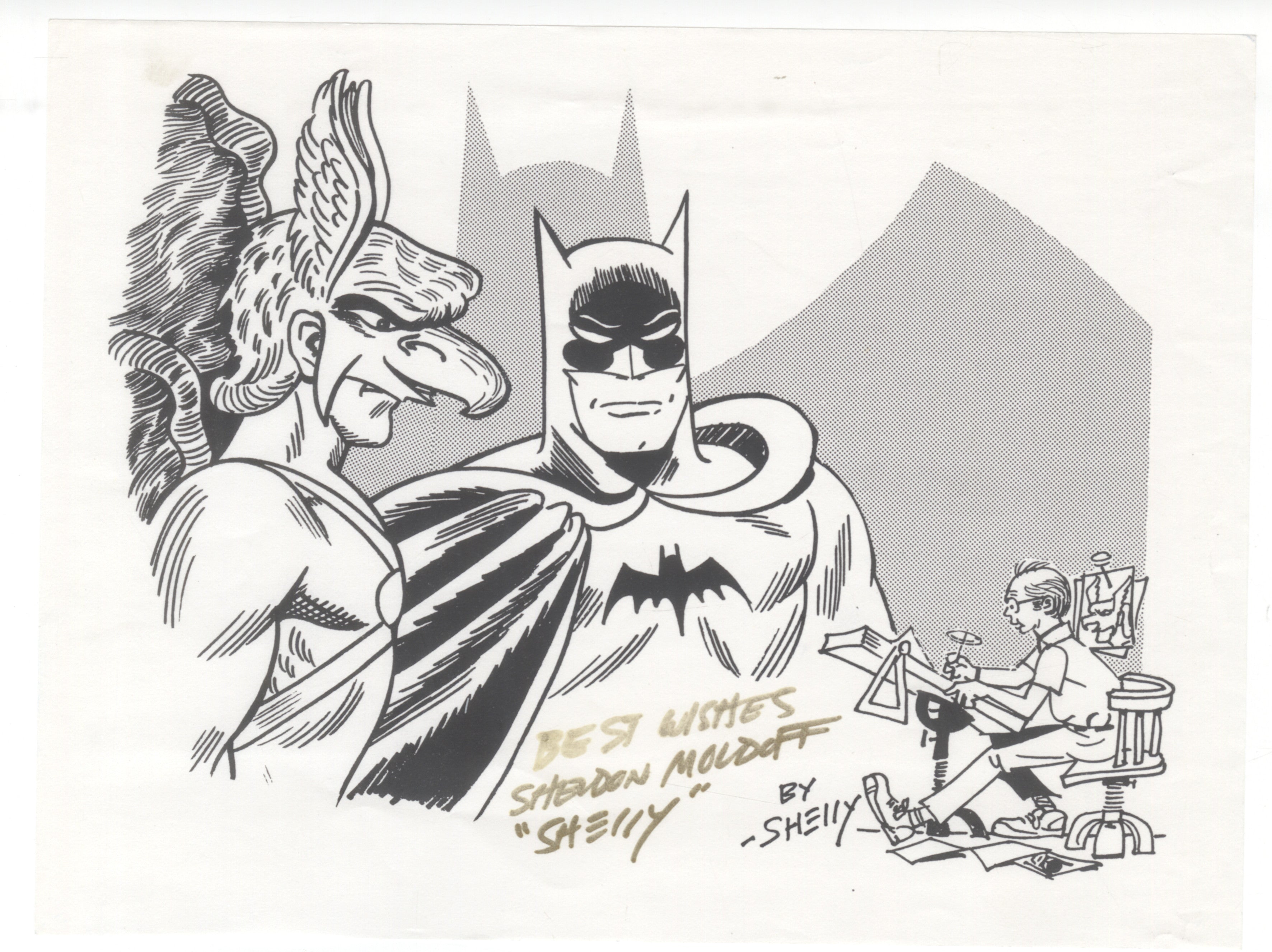 Stampa artistica a fumetti di Batman e Hawkman firmata da Moldoff