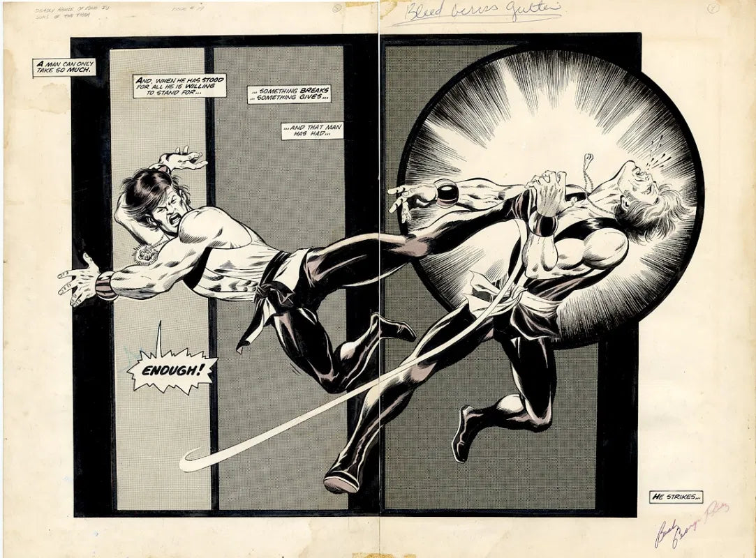 Deadly Hands of Kung Fu # 19 - Pagina a doppia apertura - Sons of the Tiger 1975 di George Perez