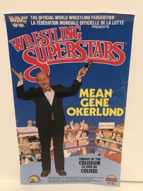 Poster/Confezione originale di un giocattolo LJN WWF di Mean Gene Okerlund, con artwork originale.