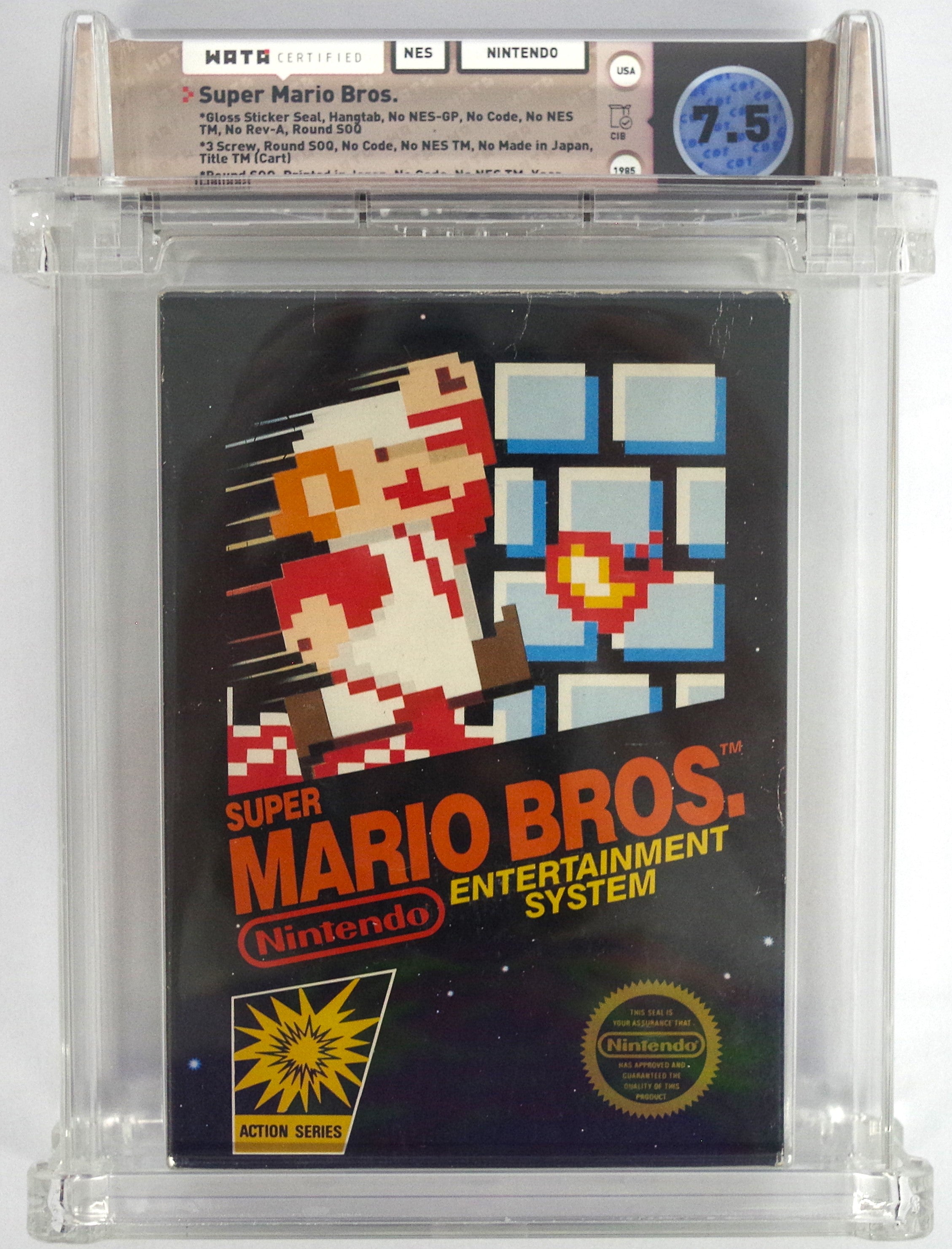 Super Mario Bros NES, adesivo lucido, videogioco, WATA 7.5, CIB (Complete In Box - Completo nella confezione originale)