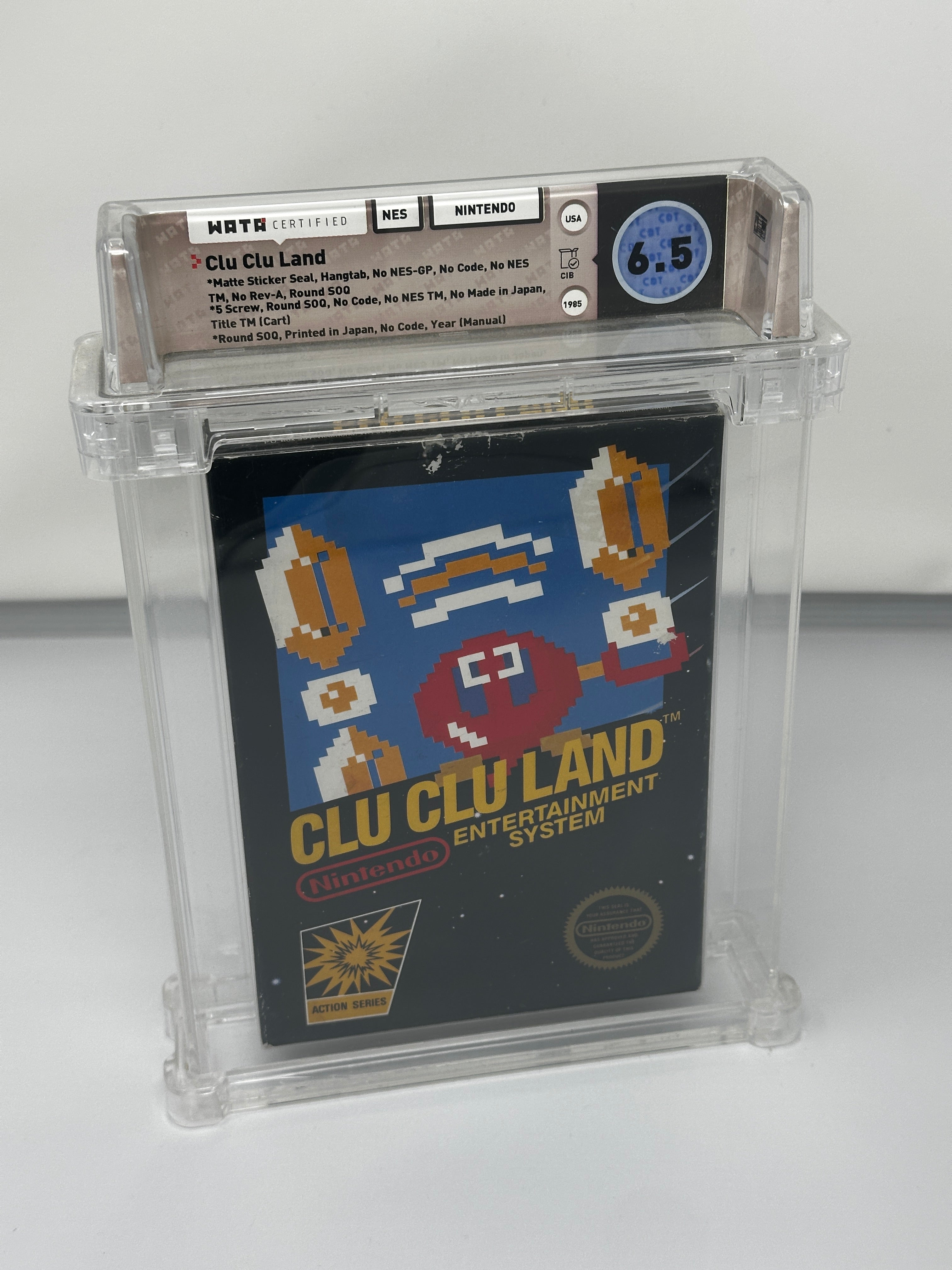 Clu Clu Land, sigillo adesivo opaco, WATA 6.5, CIB, videogioco NES Nintendo.