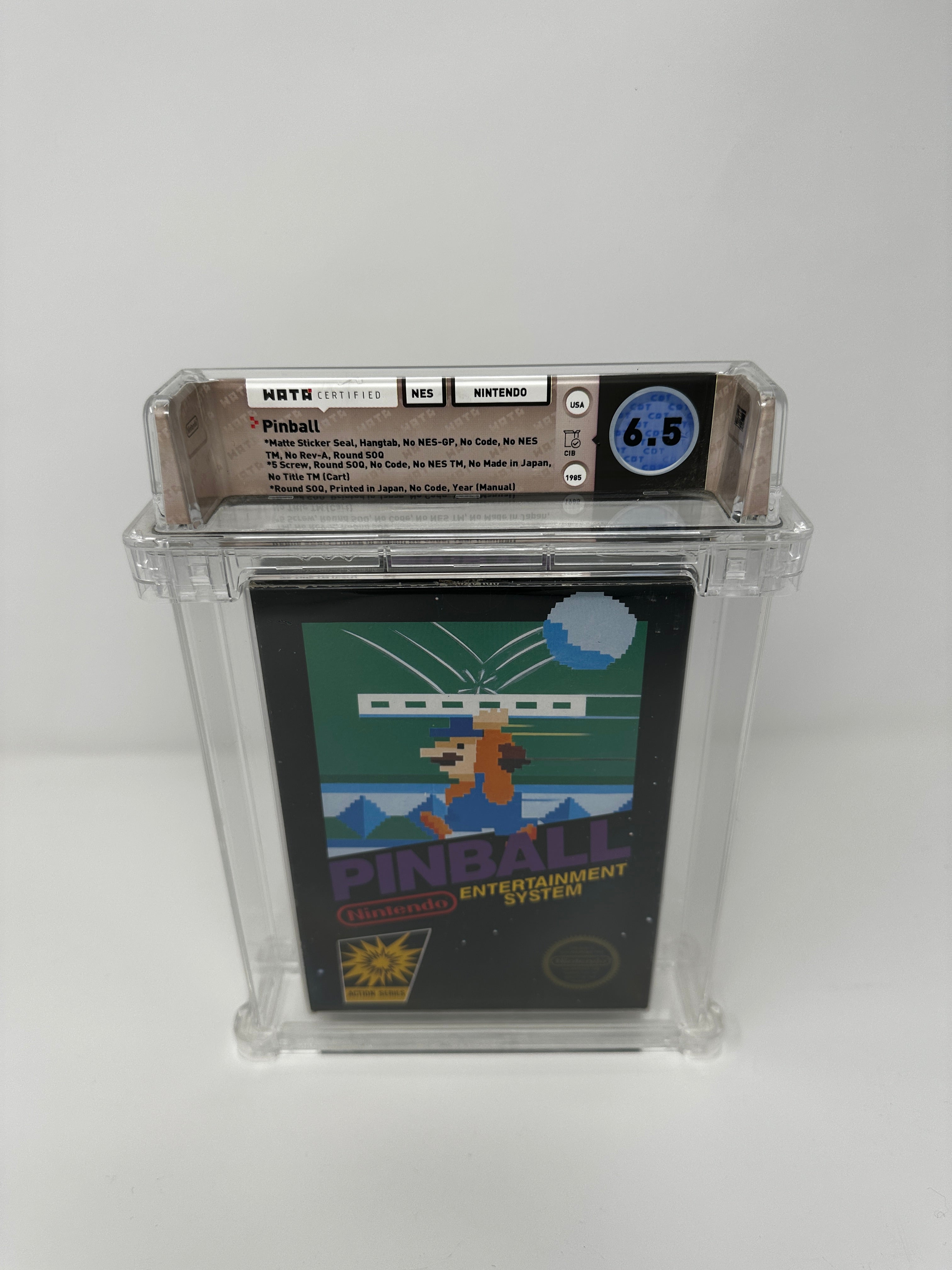 Pinball WATA 6.5 CIB, adesivo opaco, prima produzione. NES Nintendo 1985
