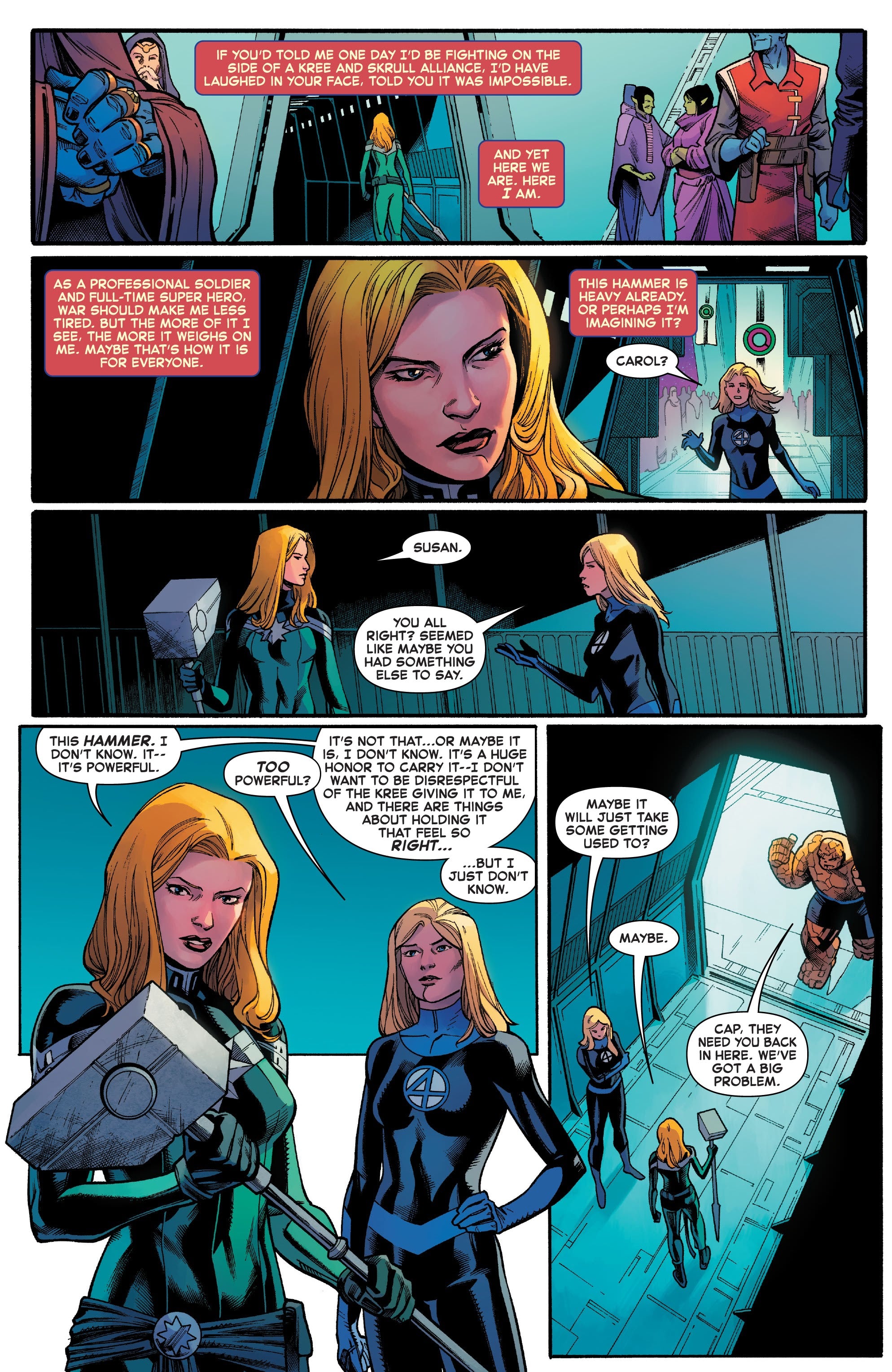 Captain Marvel #18 (152) pagina 7. Disegno originale a fumetti di Cory Smith.
