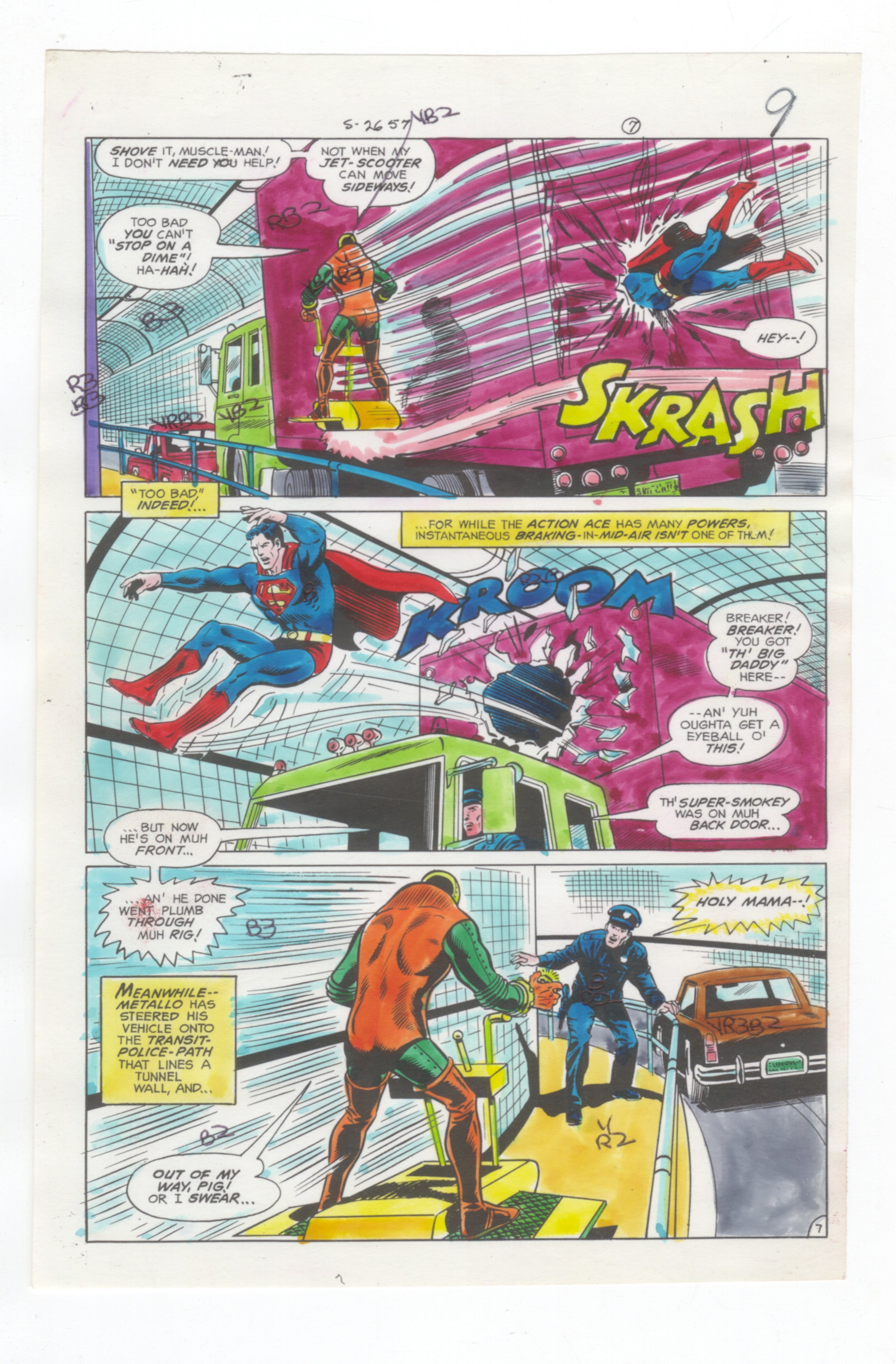 Superman #316 pag. 7 GUIDA AL COLORE Arte originale per la produzione del fumetto