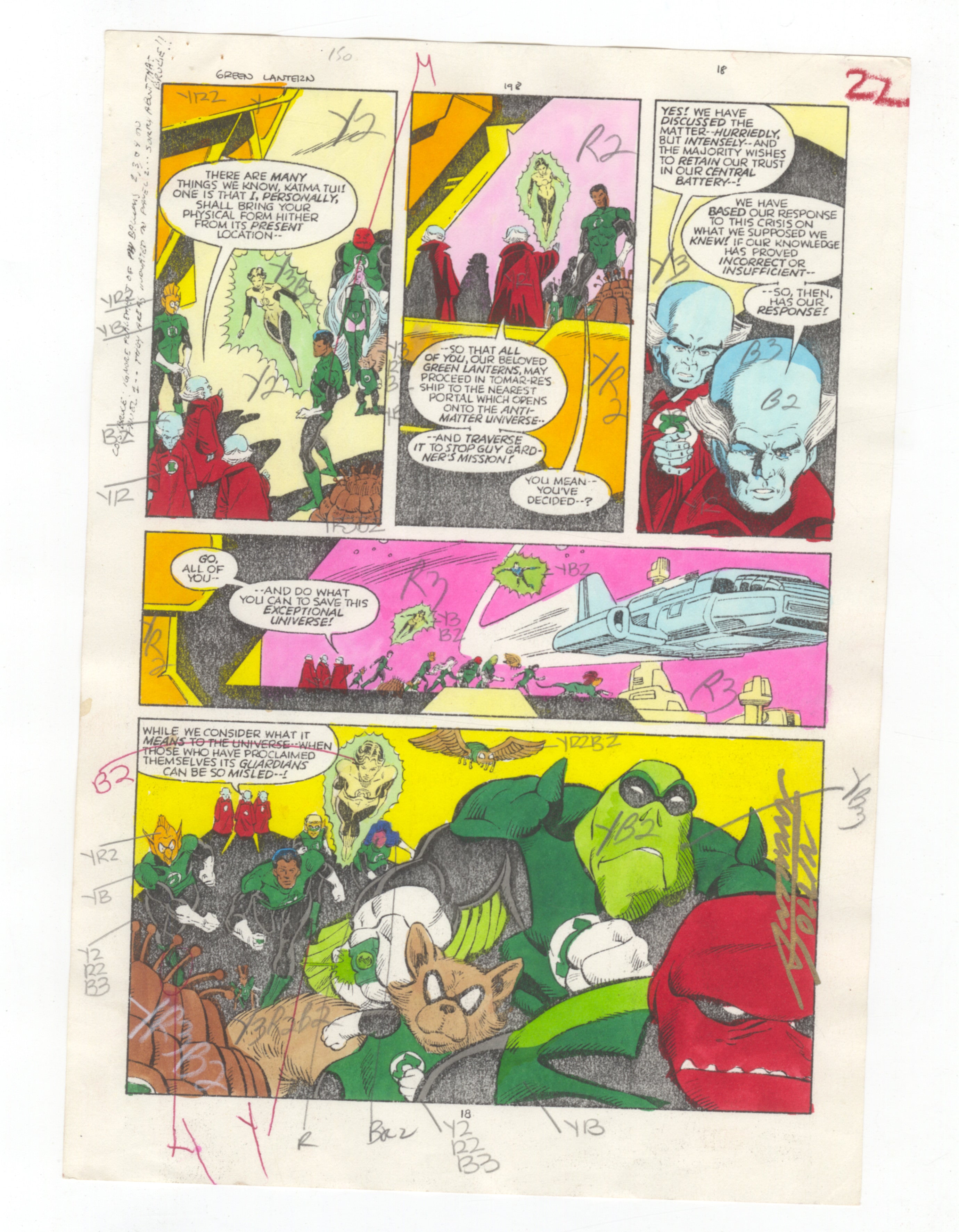 Green Lantern #198 pag. 18 GUIDA COLORI Illustrazione originale per la produzione di fumetti