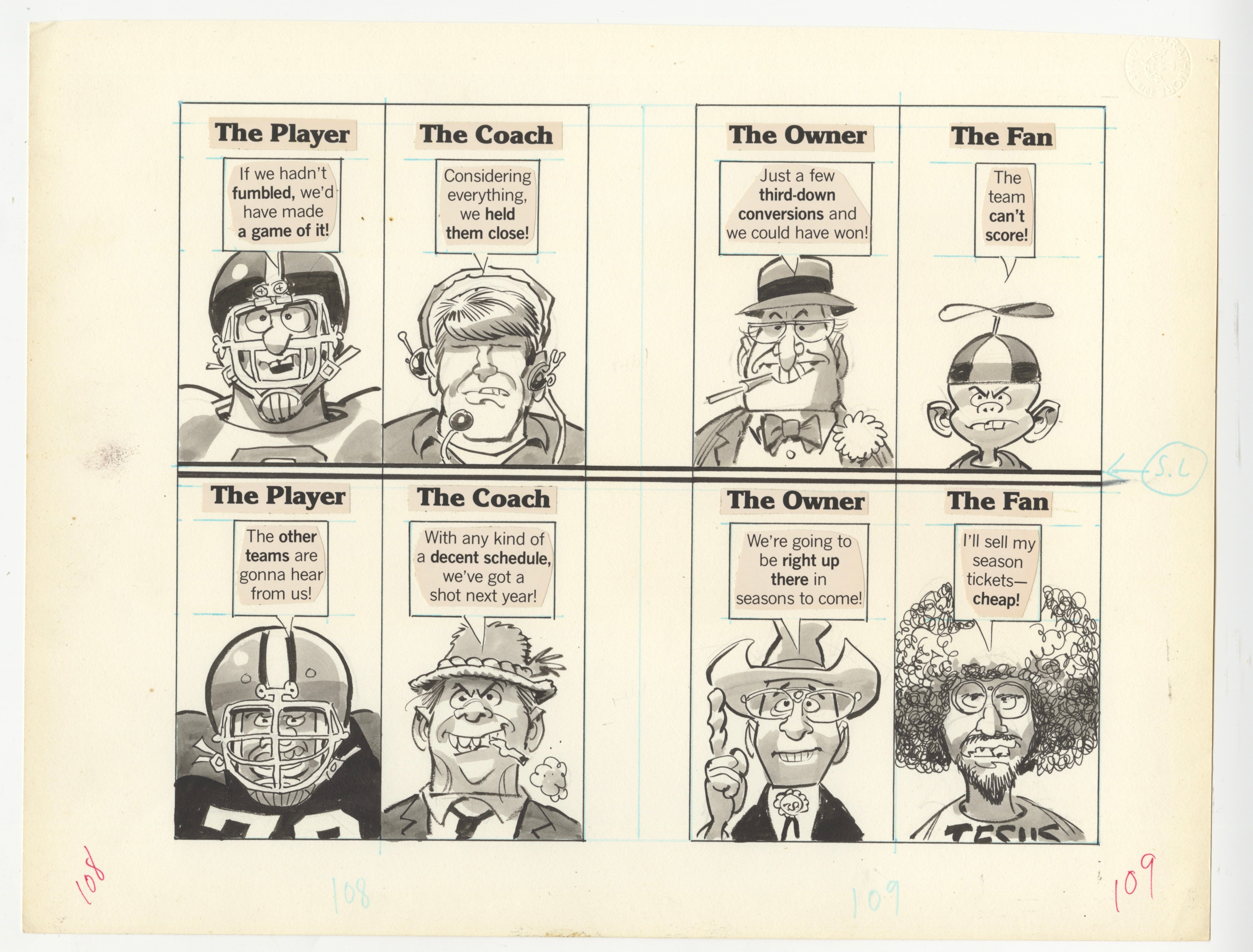 Immergetevi nella maestria artistica del leggendario Jack Davis in questa storia a fumetti originale vintage completa. Lasciatevi trasportare in questa storia completa di più pagine a tema sportivo, perfetta per collezionisti di MAD Magazine o libri tascabili. Con questo pezzo, potrete possedere un originale vintage di Jack Davis, raro e unico nel suo genere. Storia di 7 pagine su 4 pezzi separati!