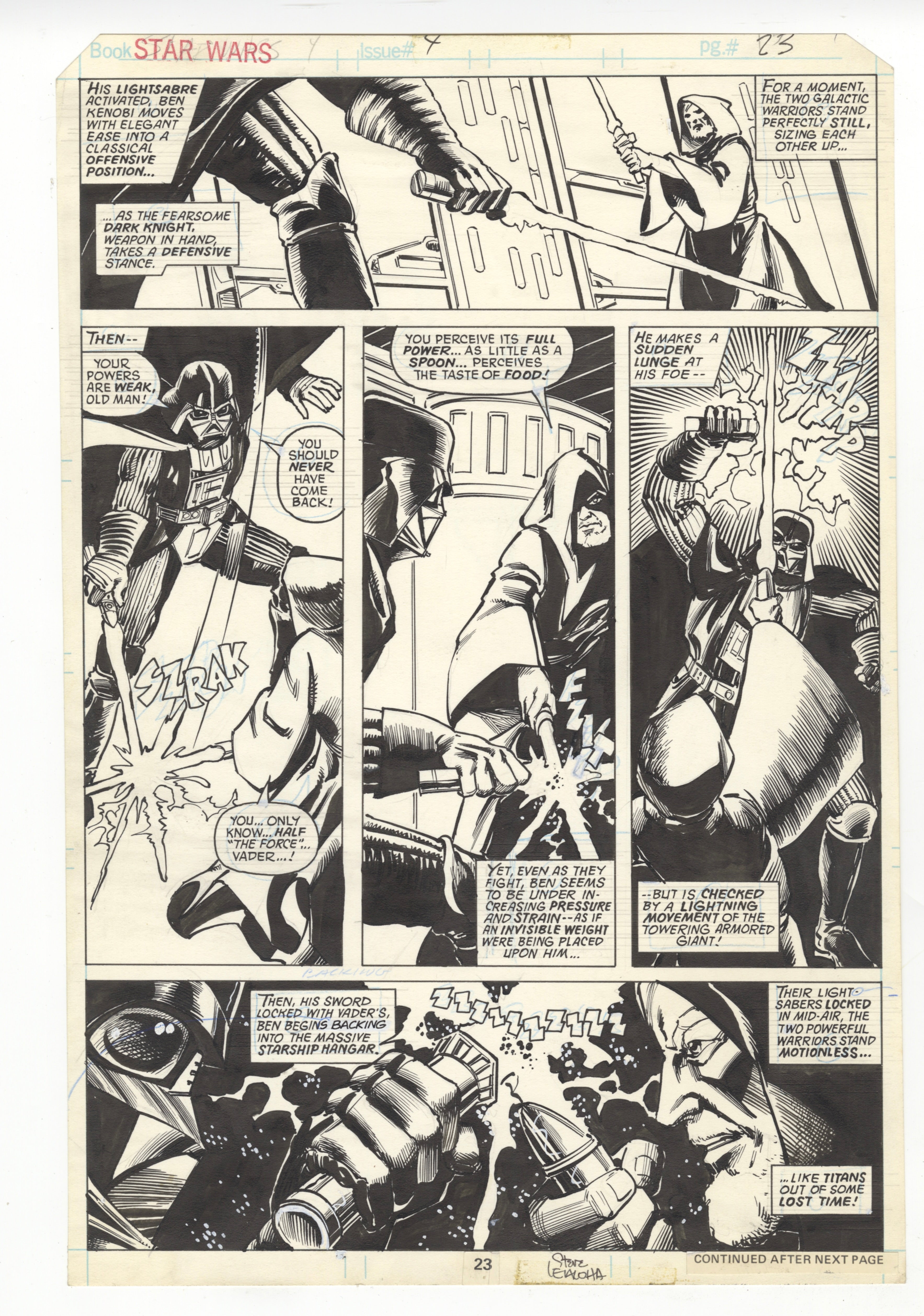 Star Wars #4 Pagina 23 Howard Chaykin Disegno originale a fumetti Vader contro Obi Wan