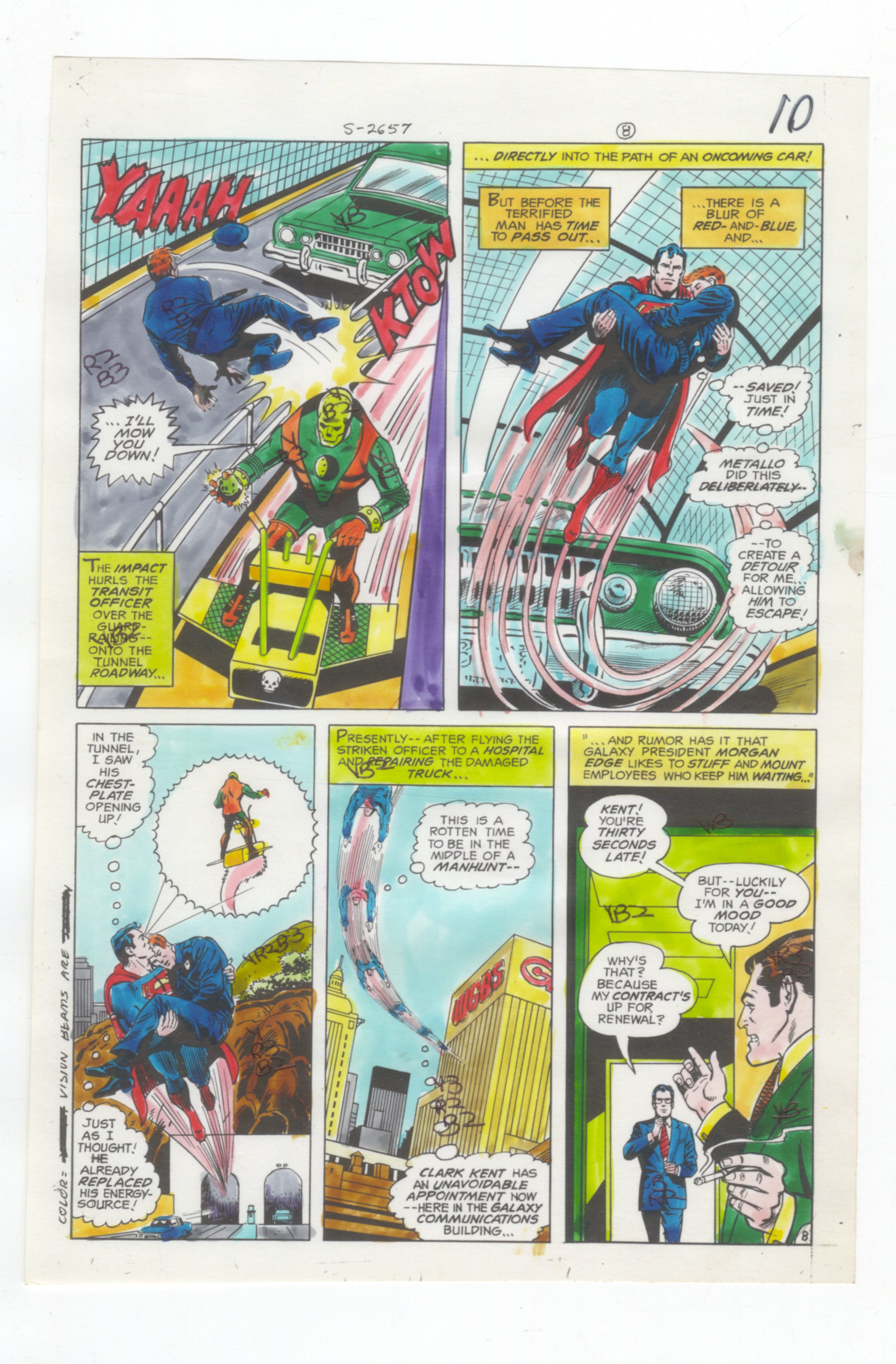 Superman #316 pag. 8 GUIDA AL COLORE Disegno originale per la produzione del fumetto