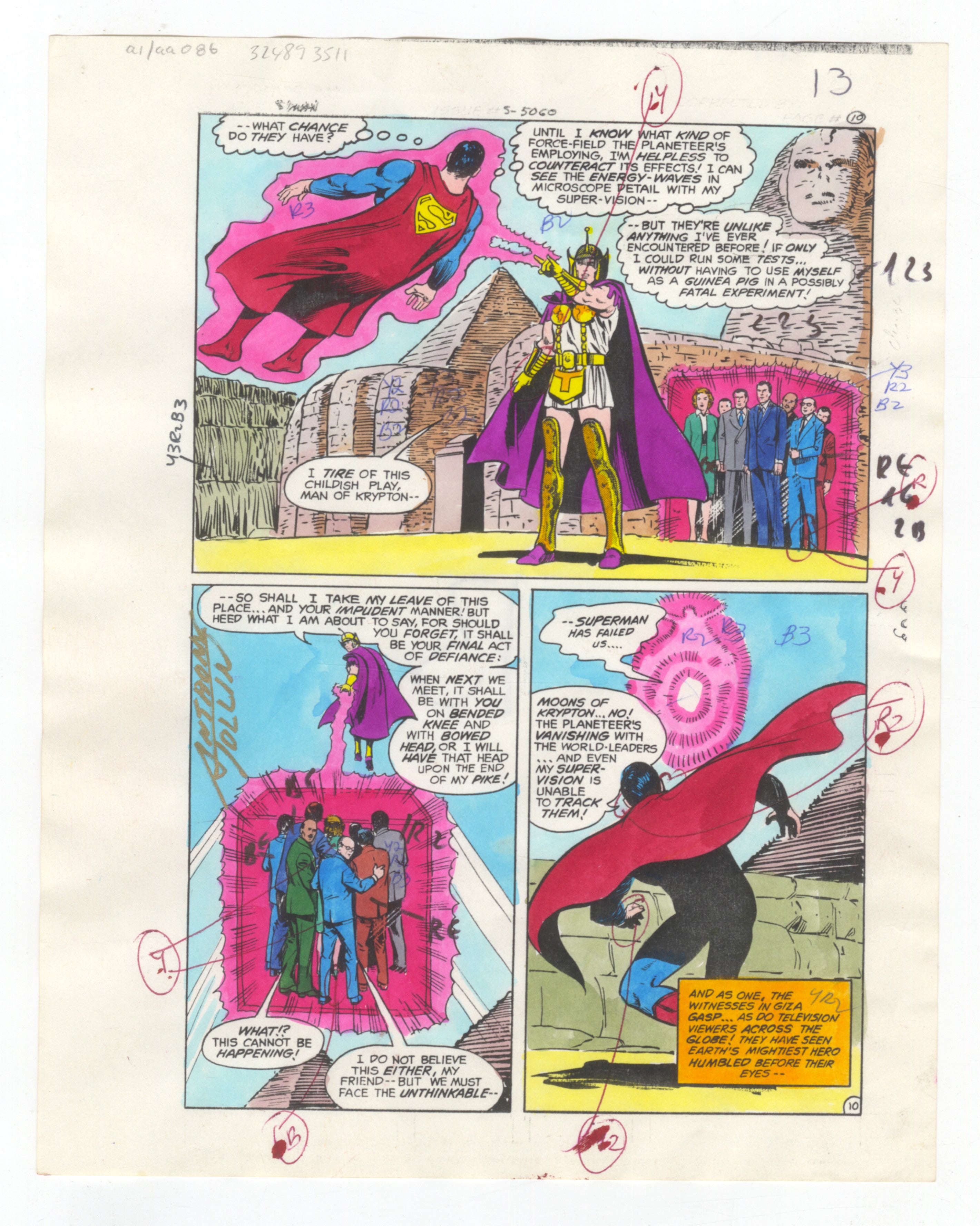 Superman #387 pag. 10 GUIDA AL COLORE Arte originale per la produzione del fumetto