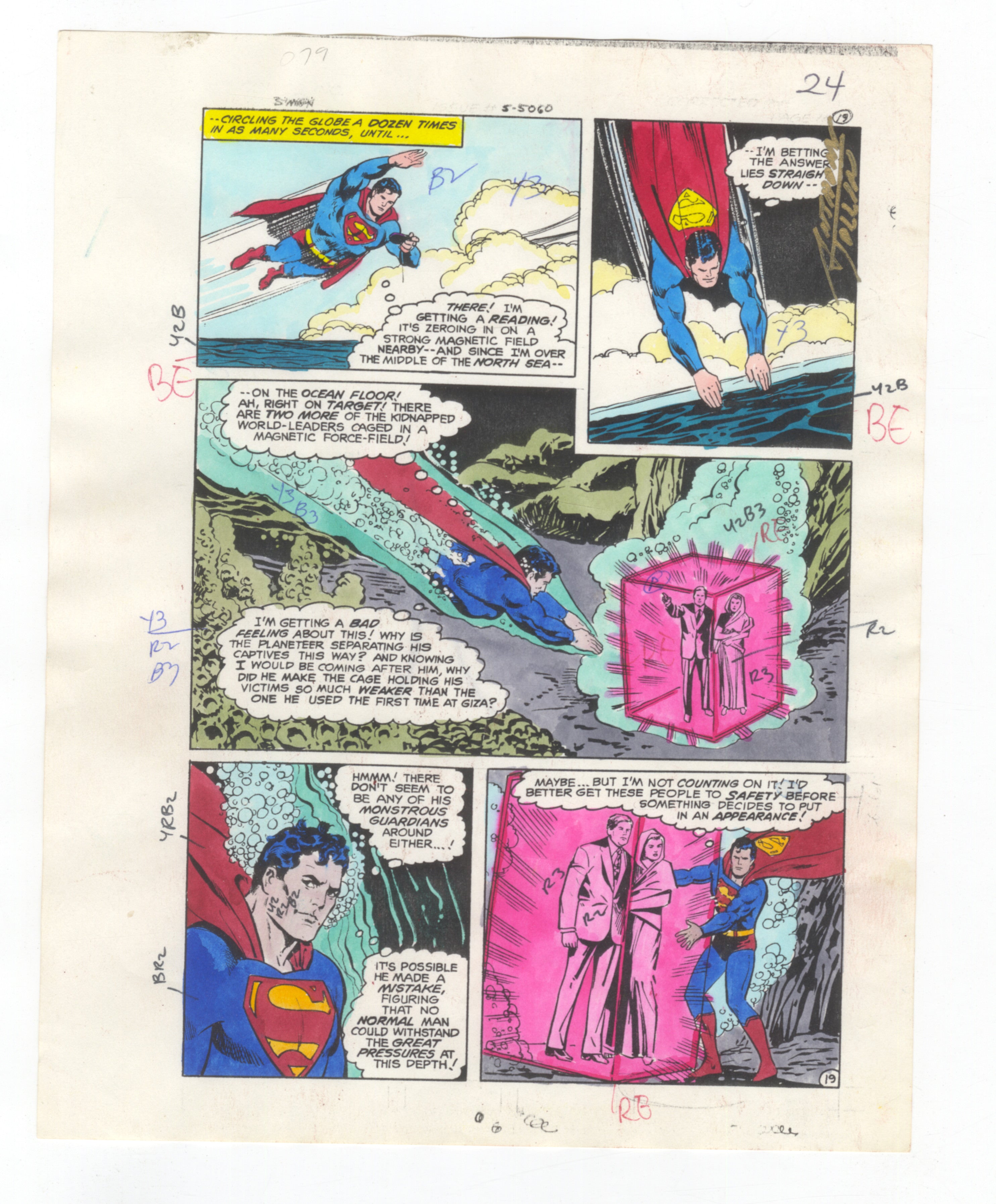 Superman #387 pag. 19 GUIDA AL COLORE Disegno originale per la produzione del fumetto