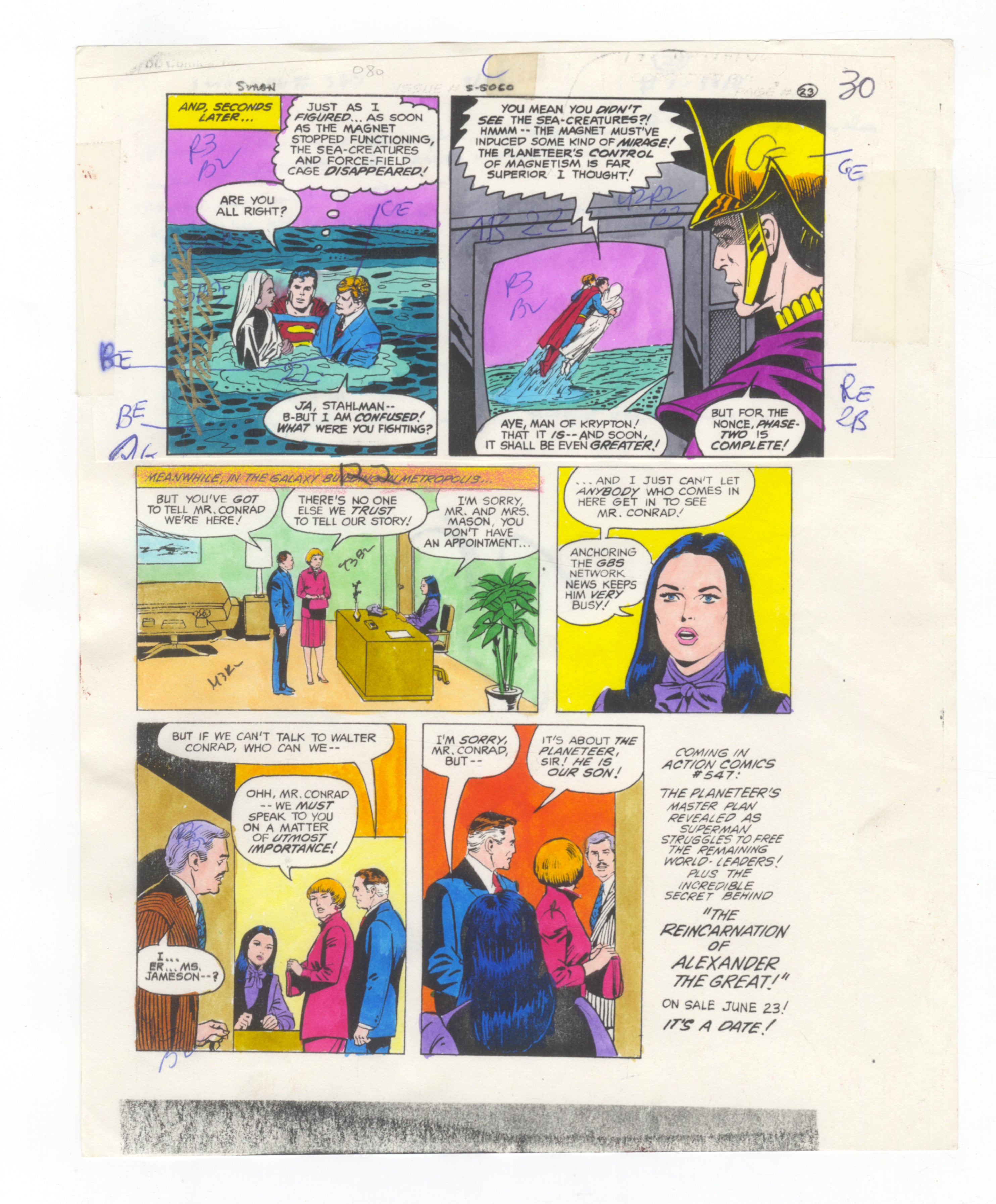 Superman #387 pag. 23 GUIDA COLORI Disegno originale per la produzione del fumetto