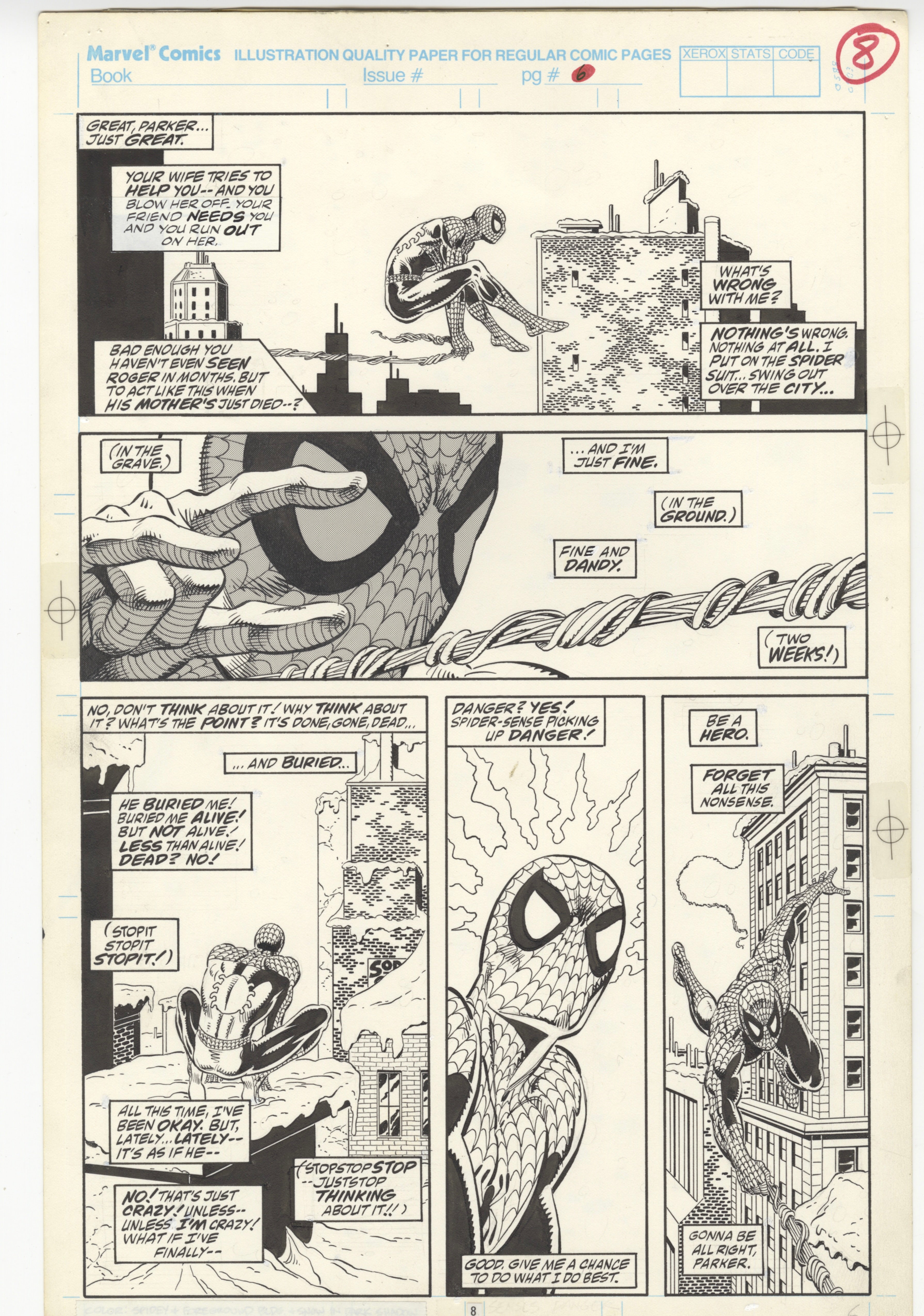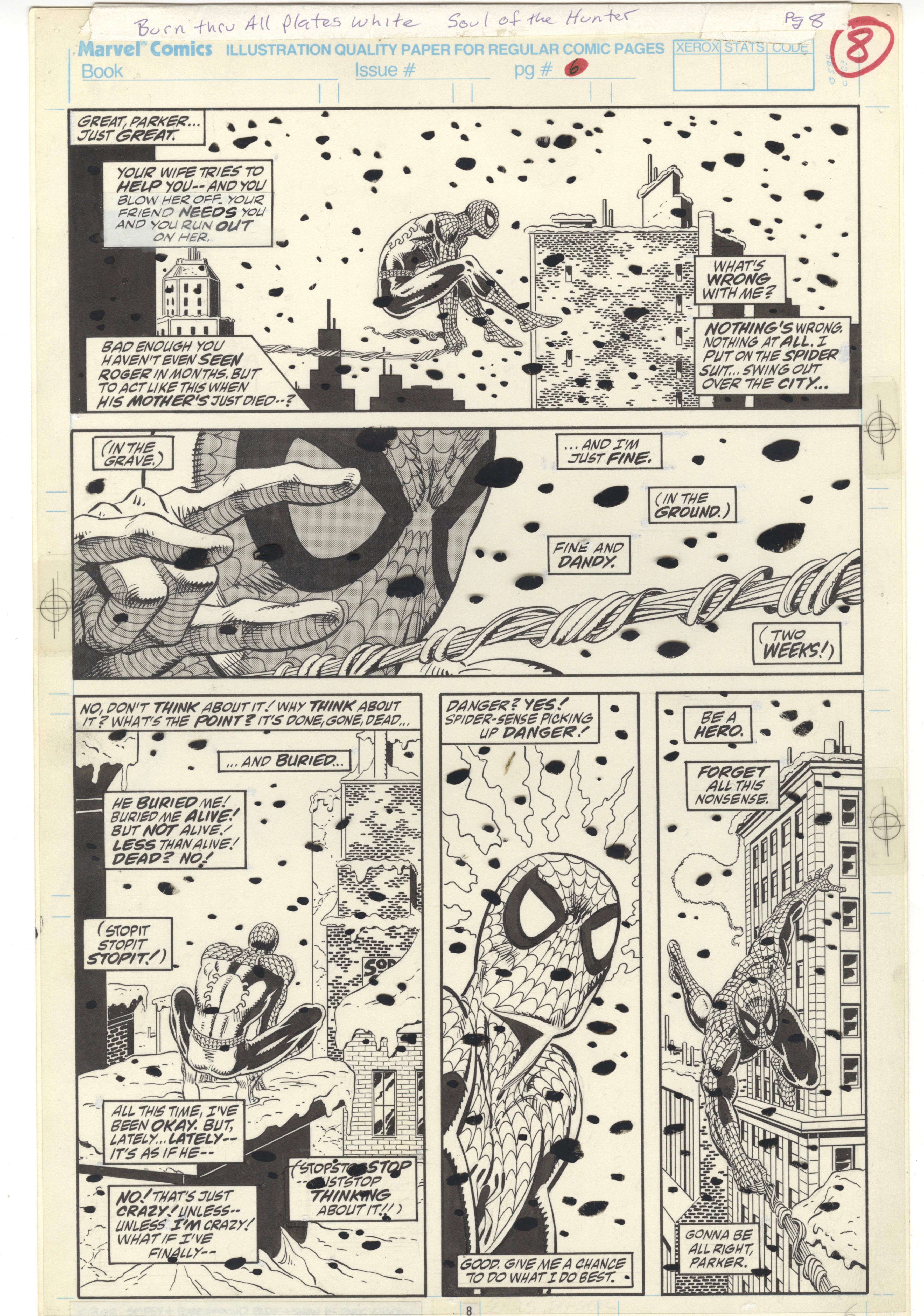The Amazing Spider-Man: L'anima del cacciatore, pagina 8, illustrazione originale di ZECK per fumetto.