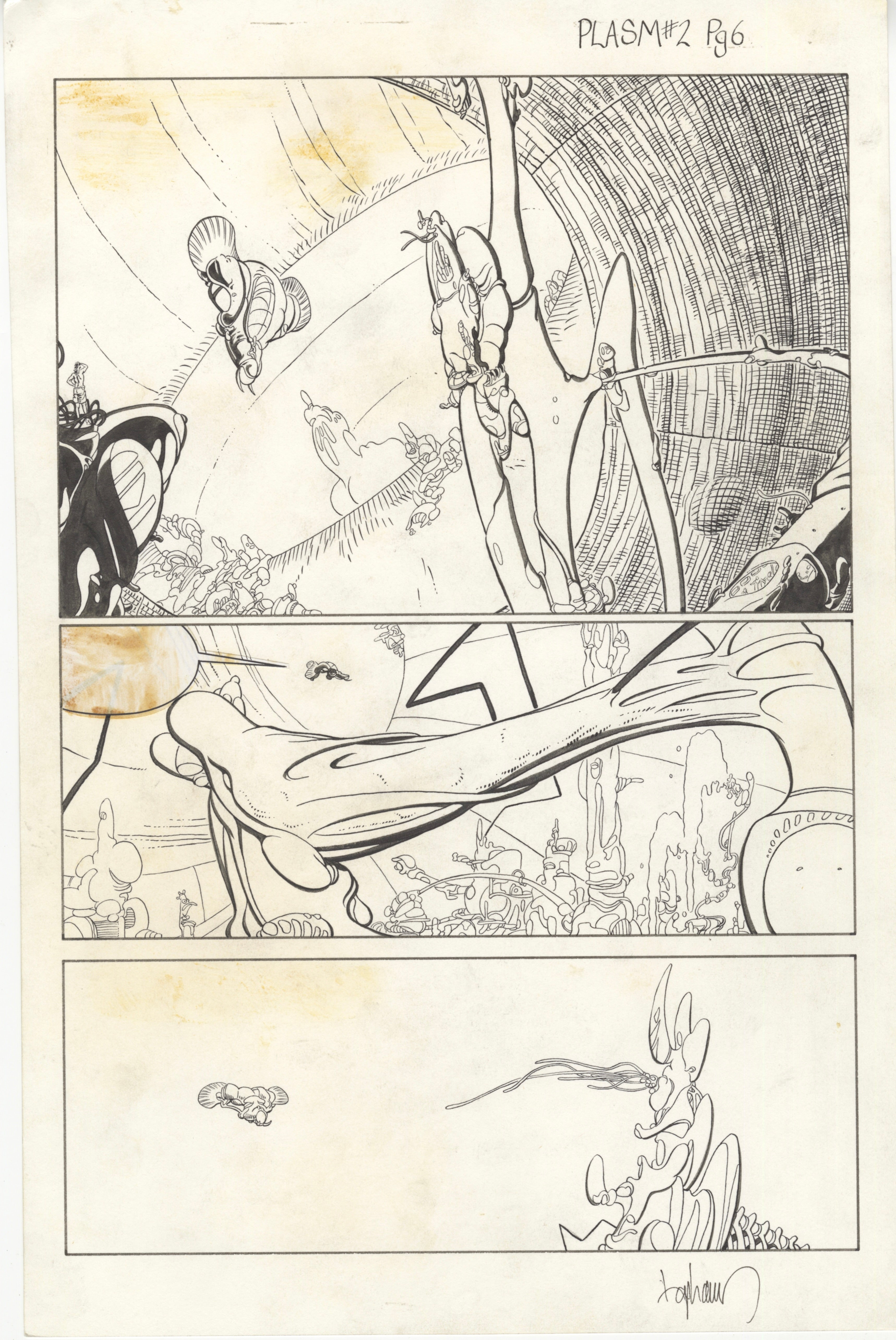 Warriors of Plasm #2 pag. 6 - Disegno originale per fumetto di David Lapham - Mezza pagina a colori